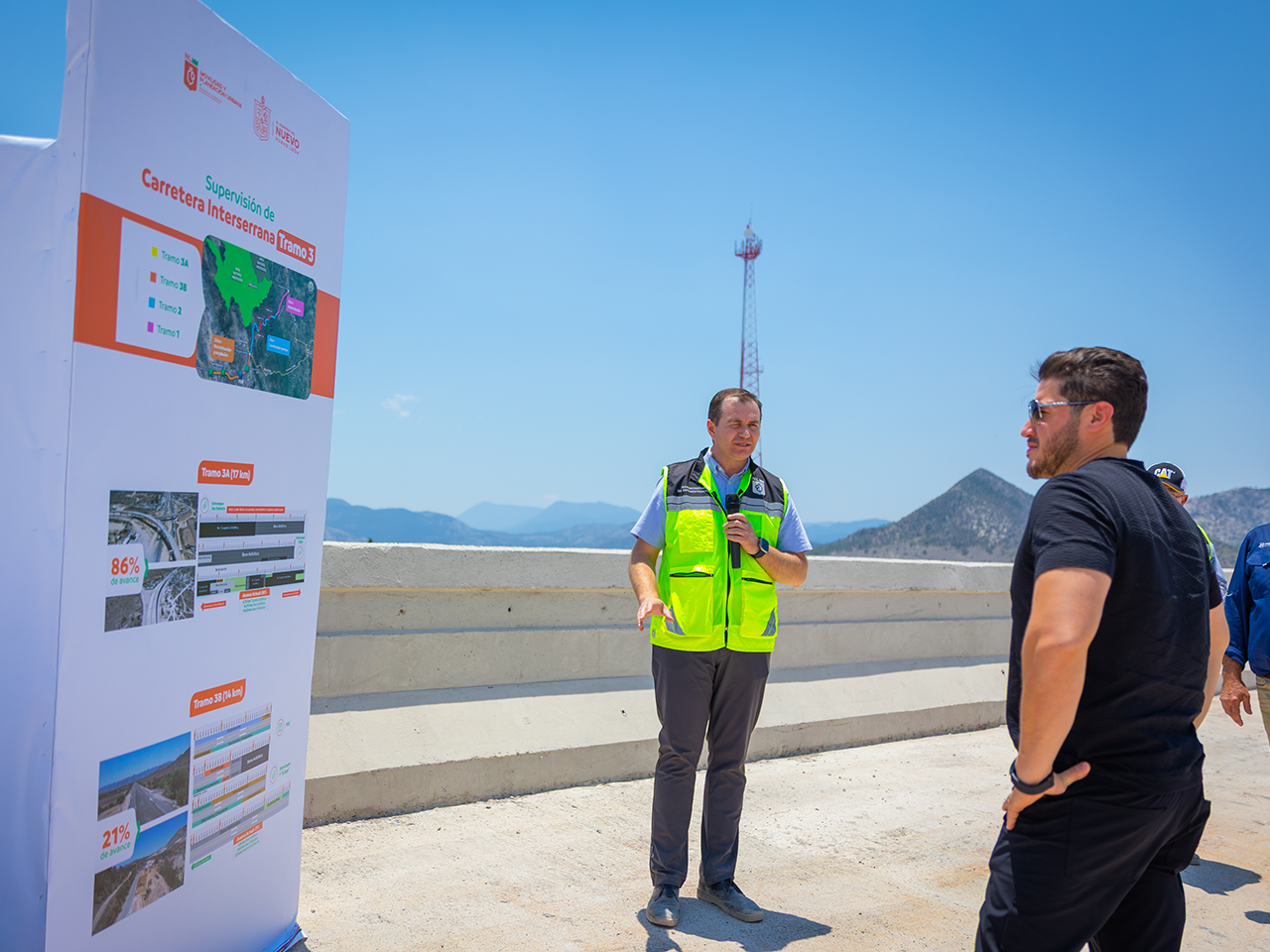 Galeana, Nuevo León.- El Gobernador de Nuevo León Samuel Alejandro García Sepúlveda realizó una gira por el Sur del Estado y supervisó los avances de las obras de la Carretera Interserrana, la cual ya tiene un avance del 86% en el tramo con la Carretera 57.