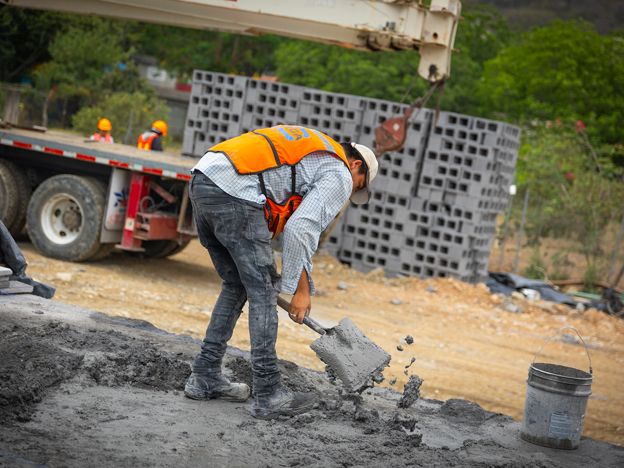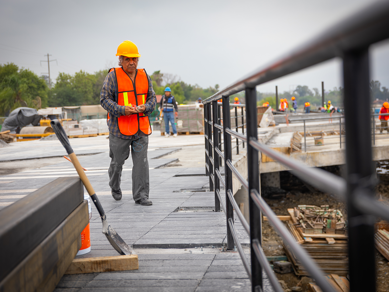 Actualmente, en el área se realiza la colocación de piso, albañilerías en jardineras y bancas, terracería en la vialidad, instalación de luminarias, pérgolas y barandales, terracería en vialidad y obras de drenaje.
