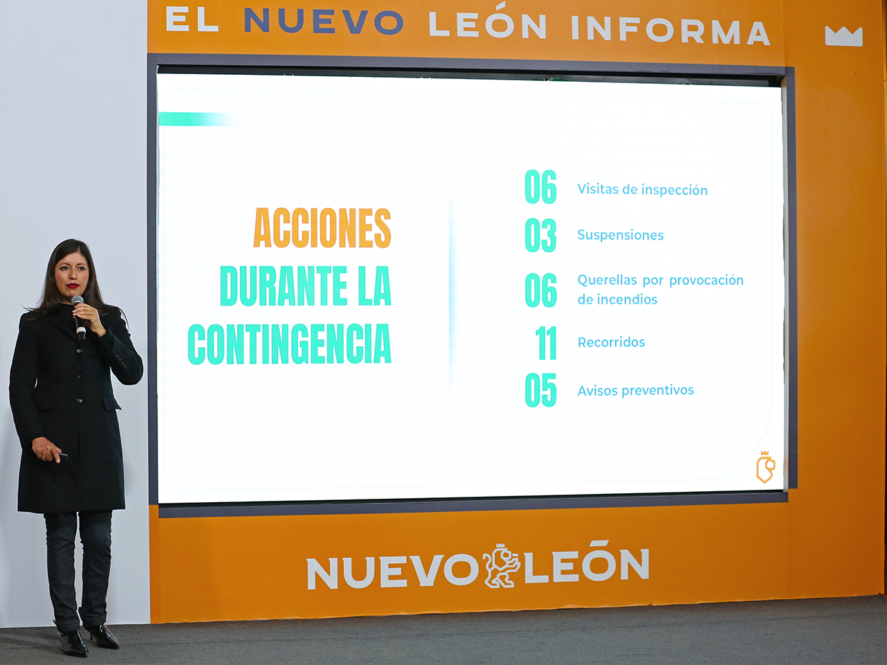 En el Nuevo León Informa, en donde estuvo acompañada del director de Protección Civil, Erik Cavazos, la titular de la Agencia para la Calidad del Aire, Armandina Valdez Cavazos dijo que los giros de las suspensiones son de un sitio irregular de disposición de residuos; una construcción; y una empresa de elaboración de prefabricados de concretos.