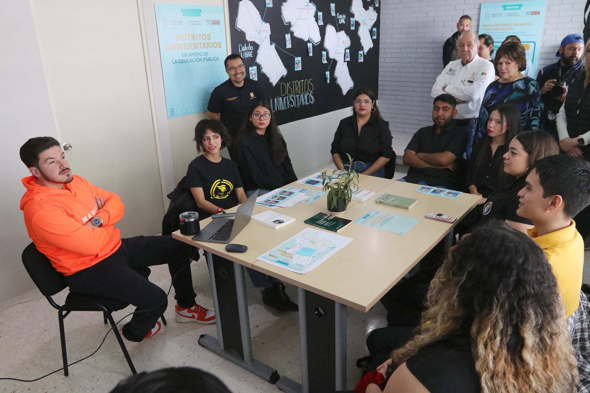 La comitiva estatal charló con alumnos de universidades que realizan sus prácticas profesionales donde se intercambiaron puntos de vista del trabajo que se realiza y coincidieron en redoblar esfuerzos para contener la depresión y la ansiedad en la época actual, enfocada en alumnos a quienes se les deberá brindar atención precisa y ampliada.