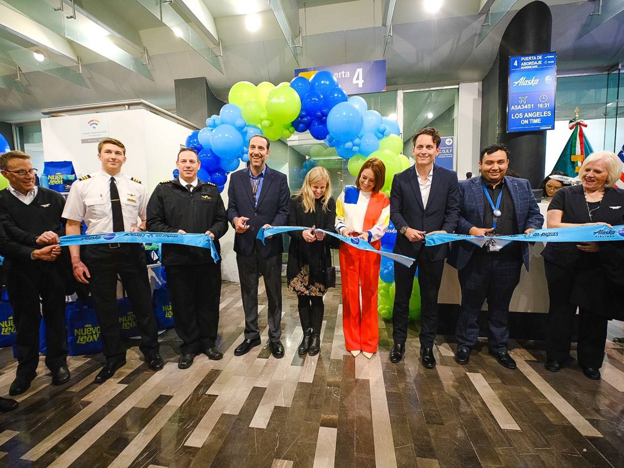 Apodaca, Nuevo León.- Como parte de los esfuerzos del Gobierno del Estado de Nuevo León, a través de la Secretaría de Turismo, por fortalecer la conectividad aérea y fomentar el desarrollo turístico y económico, se llevó a cabo la inauguración del vuelo Los Ángeles-Monterrey, operado por Alaska Airlines, desde el Aeropuerto Internacional de Monterrey.