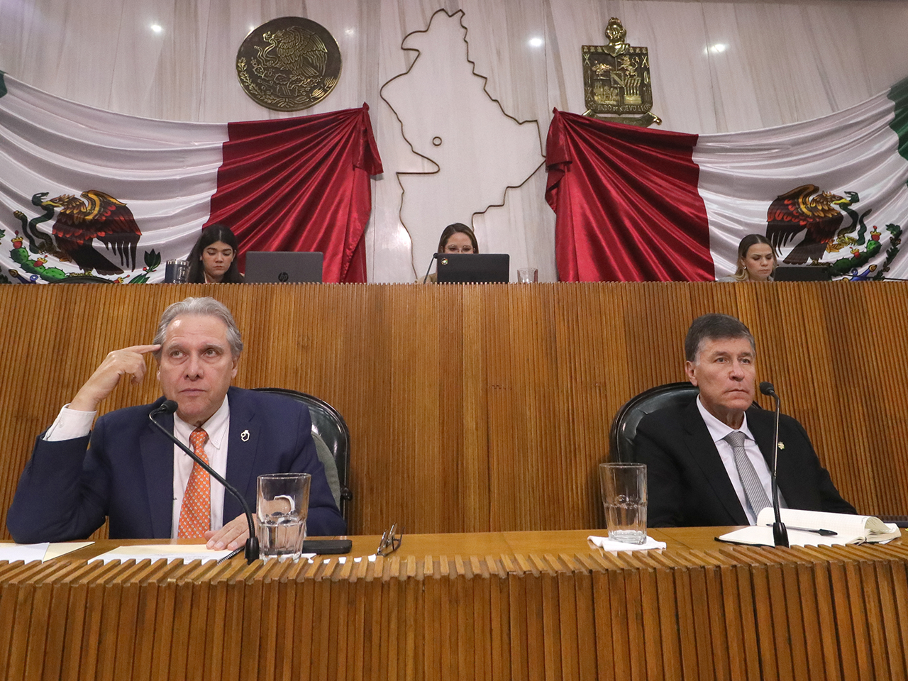 Monterrey, Nuevo León.- Al continuar con la Glosa del Tercer Informe del Gobernador Samuel Alejandro García Sepúlveda, este martes comparecieron al Congreso del Estado el director de Agua y Drenaje, Juan Ignacio Barragán y el Secretario de Medio Ambiente, Alfonso Martínez Muñoz, del Eje de Gobierno de Generación de Riqueza Sostenible.
