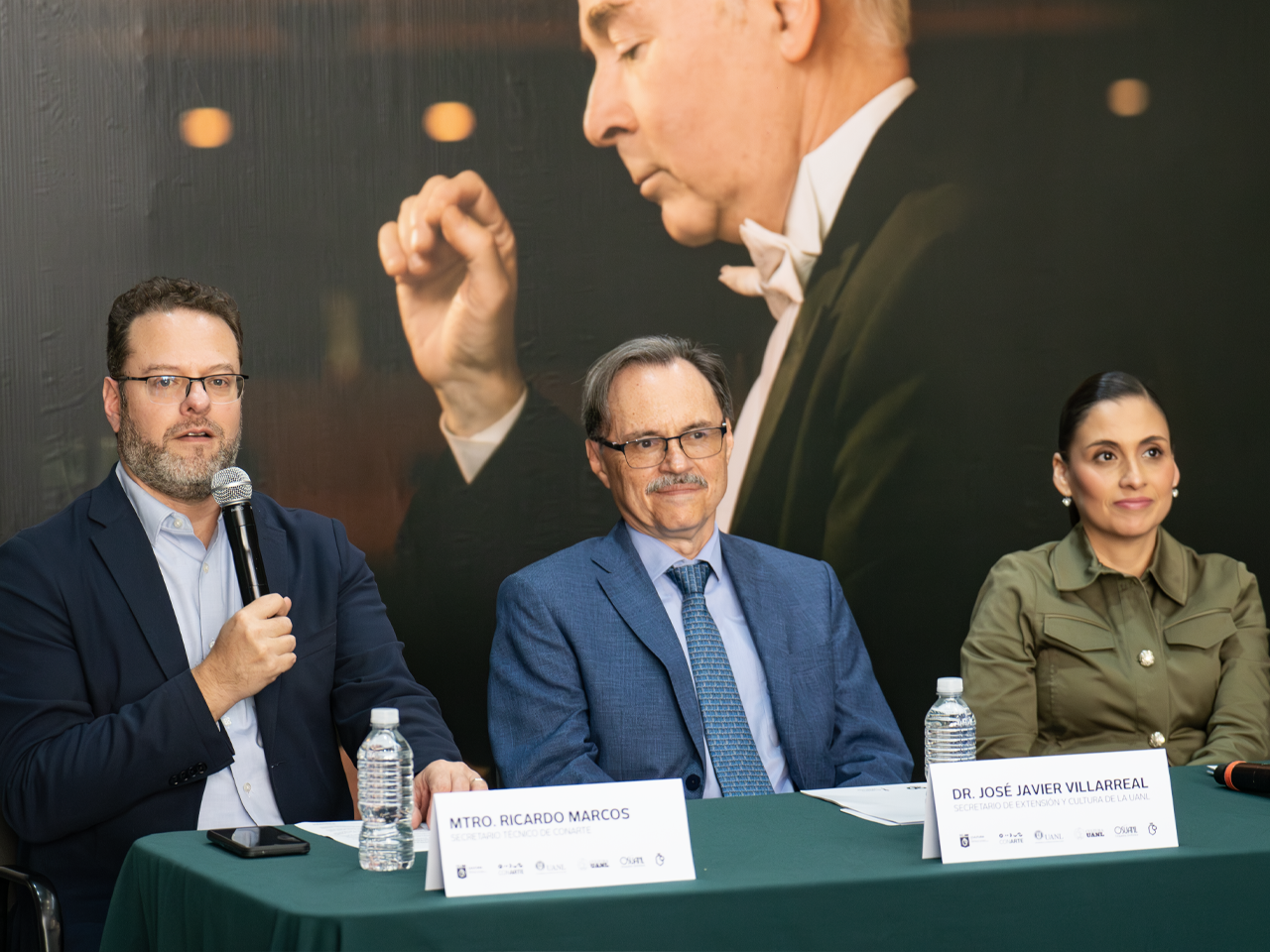 Hoy, en rueda de prensa, Melissa Segura Guerrero, Secretaria de Cultura estatal; Ricardo Marcos González, Secretario Técnico de CONARTE, además de José Javier Villarreal, Secretario de Extensión y Cultura de la UANL y Eduardo Diazmuñoz, director general y artístico de la OSUANL, hicieron el anuncio de estos conciertos.