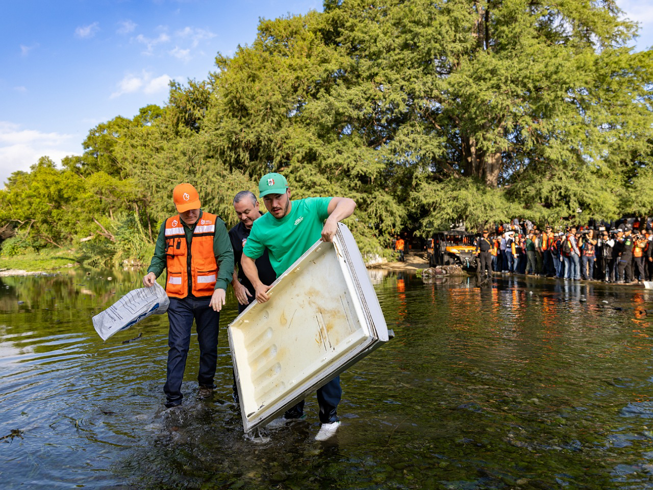 Acompañado de más de 600 personas entre funcionarios estatales, municipales, legisladores, dependencias gubernamentales, elementos de la Nueva Fuerza Civil, y representantes de organizaciones de la sociedad civil, el Mandatario estatal arrancó la limpieza del Río La Silla en el Municipio de Guadalupe y puso en marcha además un programa de reforestación con la plantación de un árbol.