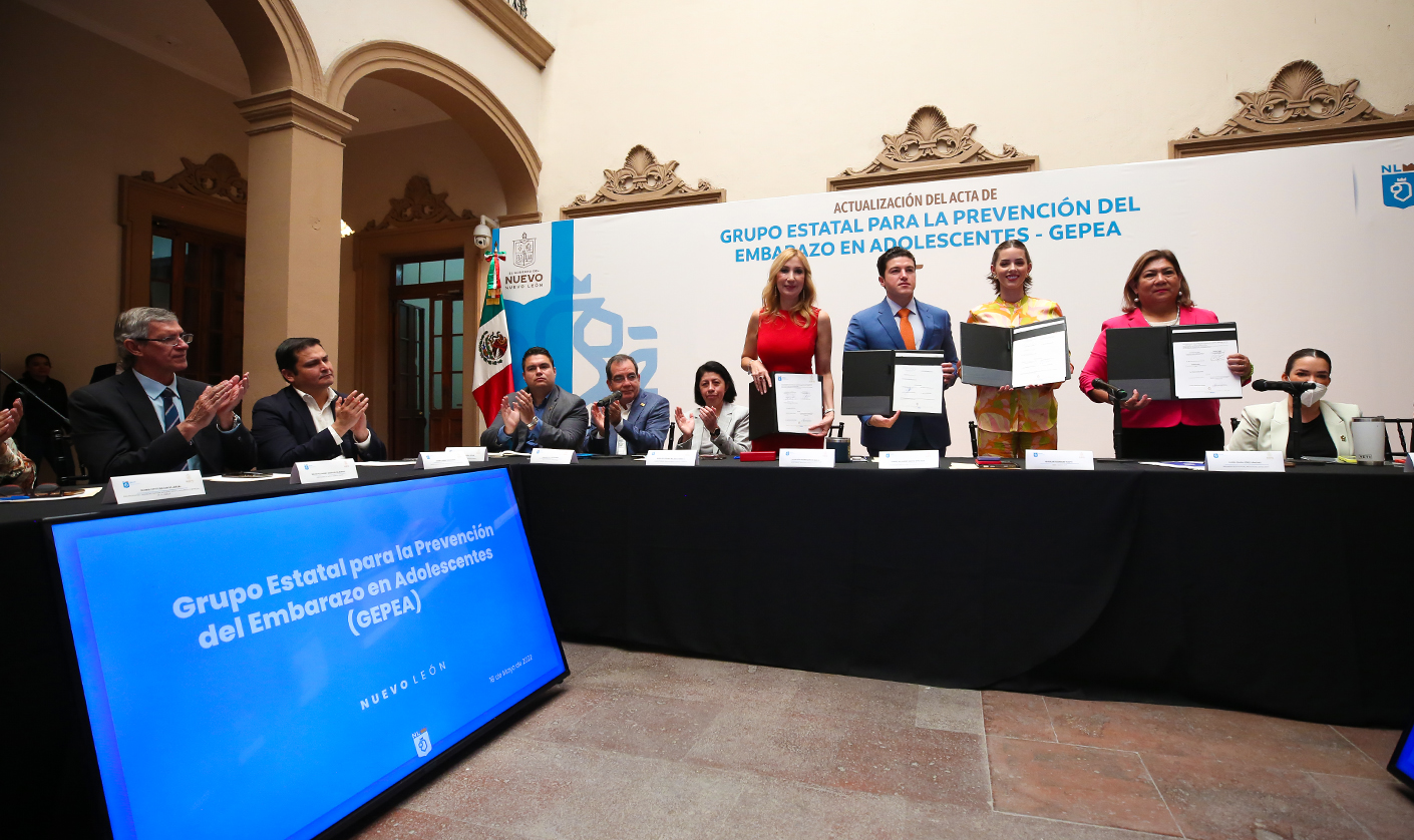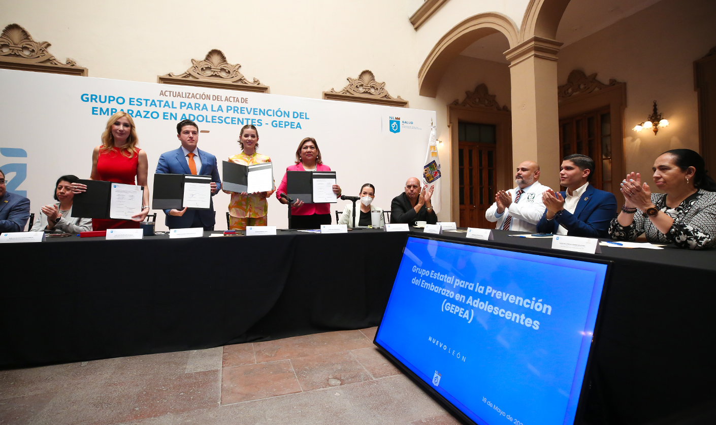 Encabezados por el Gobernador Samuel García Sepúlveda; Mariana Rodríguez Cantú de AMAR Nuevo León; y de la Secretaria de Salud, Alma Rosa Marroquín Escamilla, se llevaron a cabo los trabajos del Grupo Estatal para la Prevención del Embarazo en Adolescentes (GEPEA), mediante los que se establecieron los retos y metas de la actual administración.