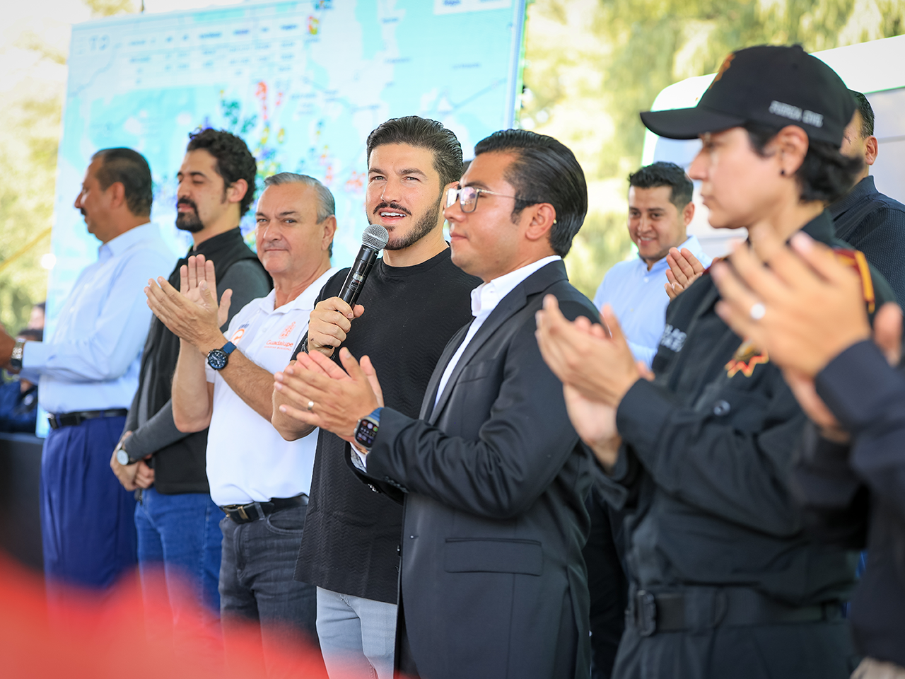 "Este mes de julio el estado de Nuevo León sacó primer lugar en todo, en todos los rubros, primer lugar en seguridad, tenemos la mejor policía de México, primer lugar en economía, tenemos el estado con mejores sueldos, con más ingresos, con más empleo, con más inversión.