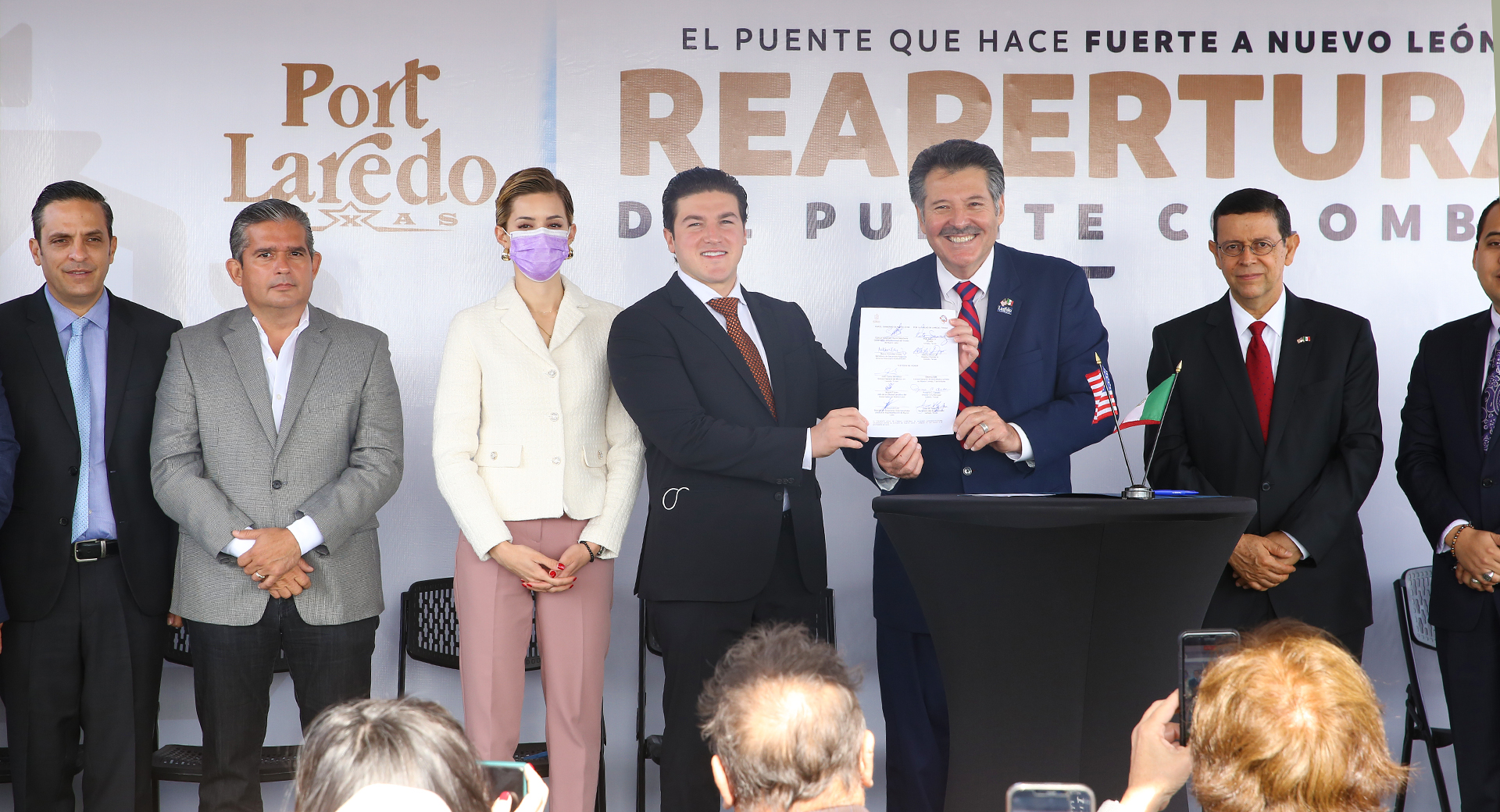 El Gobernador y el alcalde de la ciudad de Laredo, Texas, Pete Saenz, firmaron un acuerdo de hermanamiento entre esa ciudad y Nuevo León durante una ceremonia realizada en el Puente Colombia, límites con Estados Unidos, donde se comprometen a potenciar la actividad comercial entre ambas entidades.