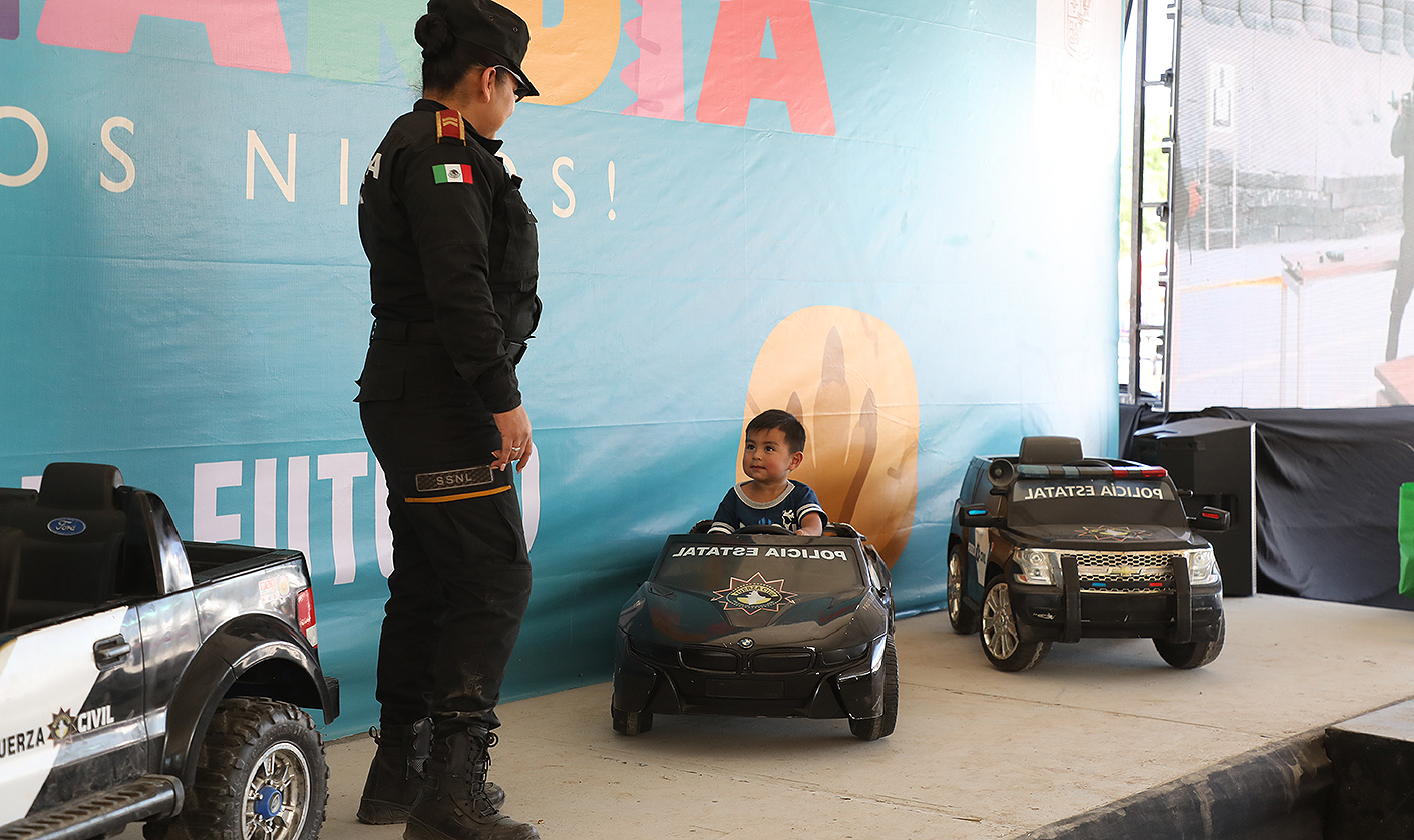 Cada módulo ideó la particular manera de agasajar a la niñez; regalos como folletos para colorear, rallies para ganar premios al instante, autorizaciones para subirse a la patrulla o sentir quienes conducen las nuevas unidades de Muevo León, fueron parte de las atracciones de este año.