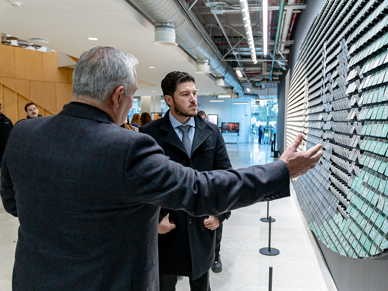 Acompañado del Rector Juan Pablo Murra, el Gobernador visitó la Galería Brave New Futuro, donde también se analizaron diversos temas de innovación tecnológica.