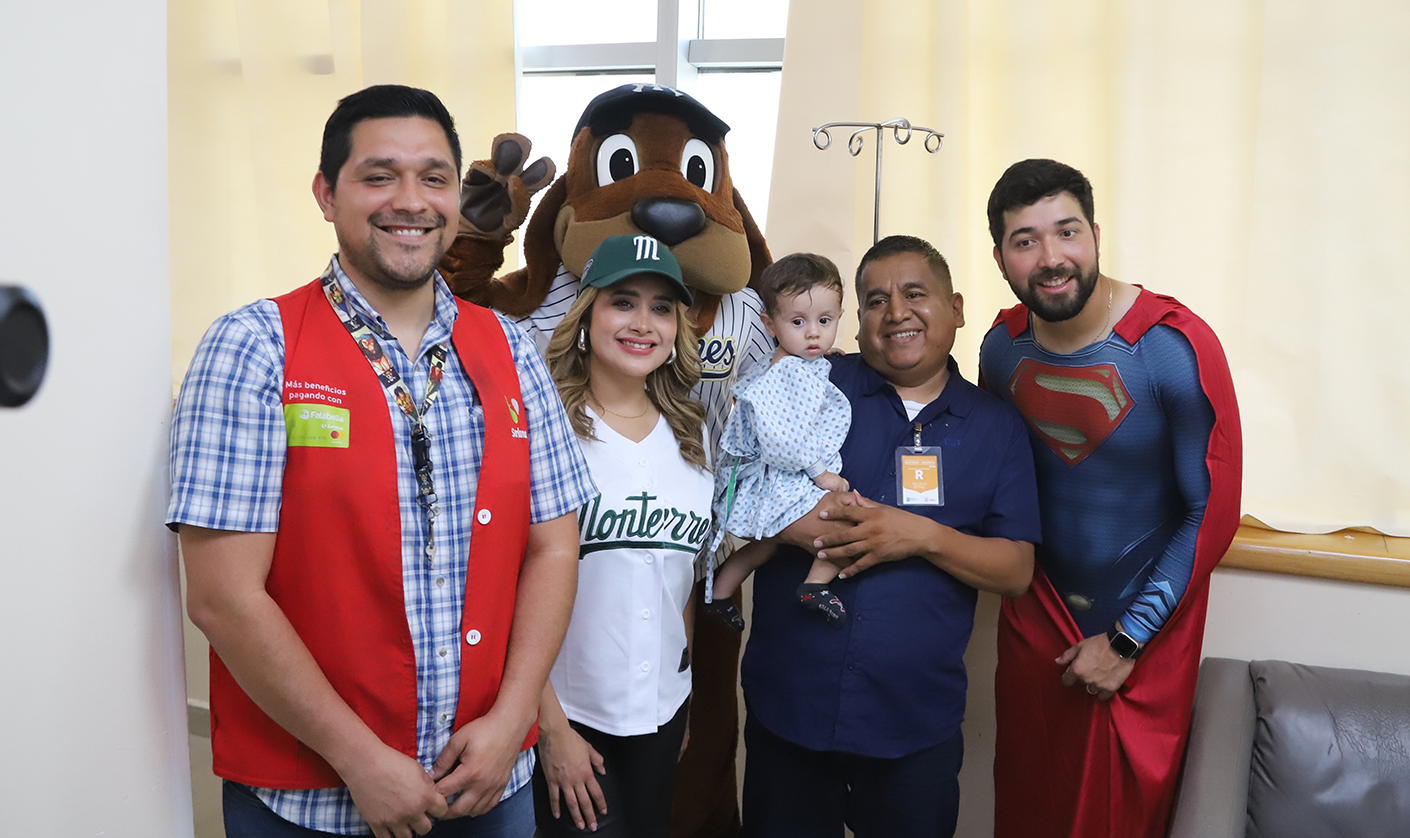 Monterrey, Nuevo León.- Las niñas y niños del Hospital Regional Materno Infantil vivieron un momento de alegría y diversión al recibir la visita del Perro Sultán y el beisbolista Roberto Valenzuela.