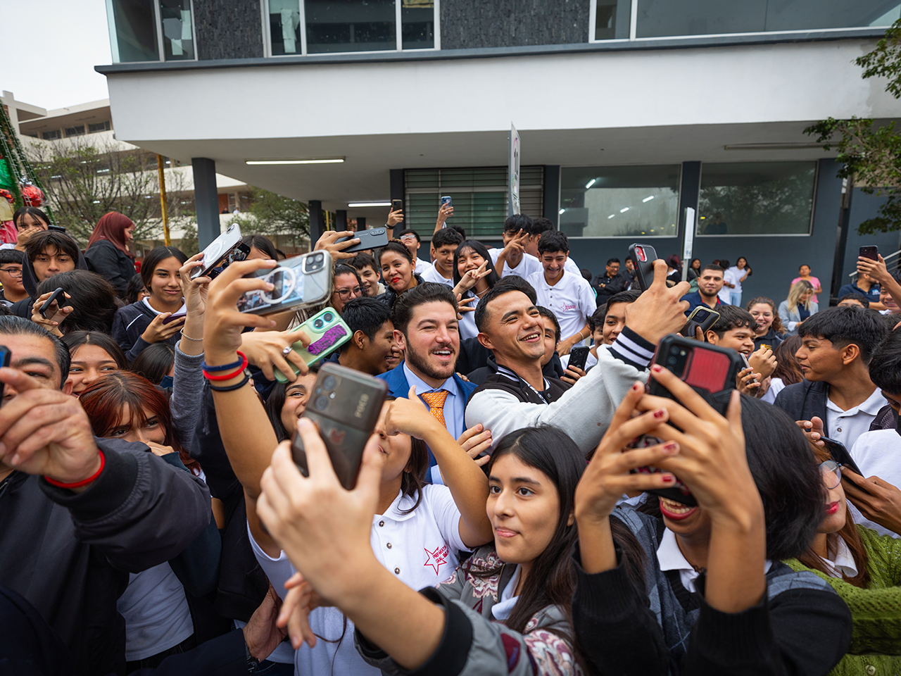 García Sepúlveda convivió con los alumnos de este centro educativo, y tras desearles felices fiestas se tomó las tradicionales selfies.