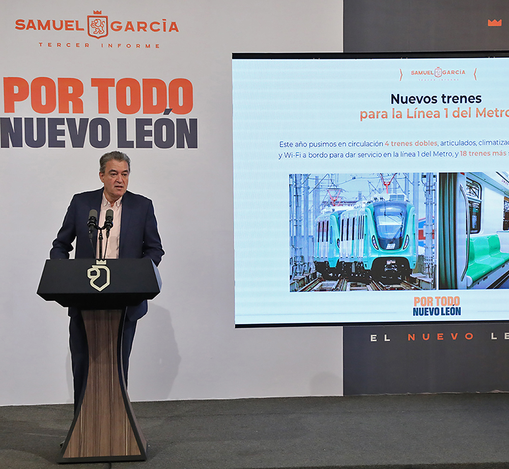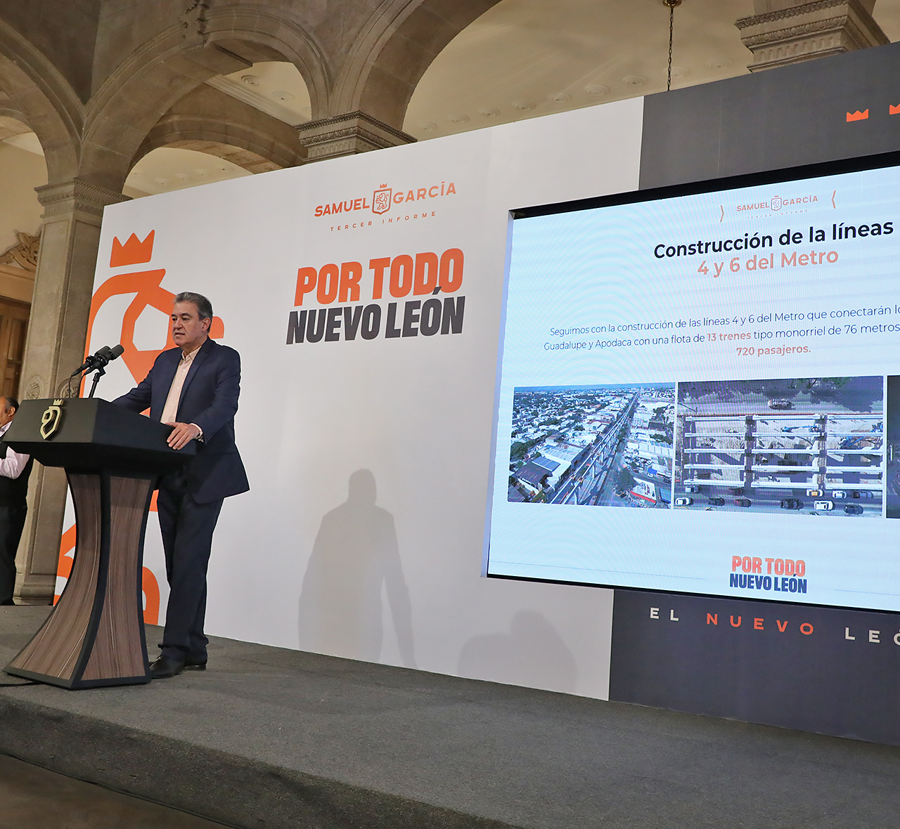 Entre otras acciones destacó los trabajos de las nuevas líneas 4 y 6 del Metro, que conectarán los municipios de Monterrey, Guadalupe y Apodaca, Santa Catarina con una flota de 13 trenes tipo monorriel de 76 metros de largo con capacidad para 720 personas. Esta tendrá una longitud de 41.7 km, será la segunda línea de monorriel más larga del mundo y la primera línea de transporte masivo más larga de América.