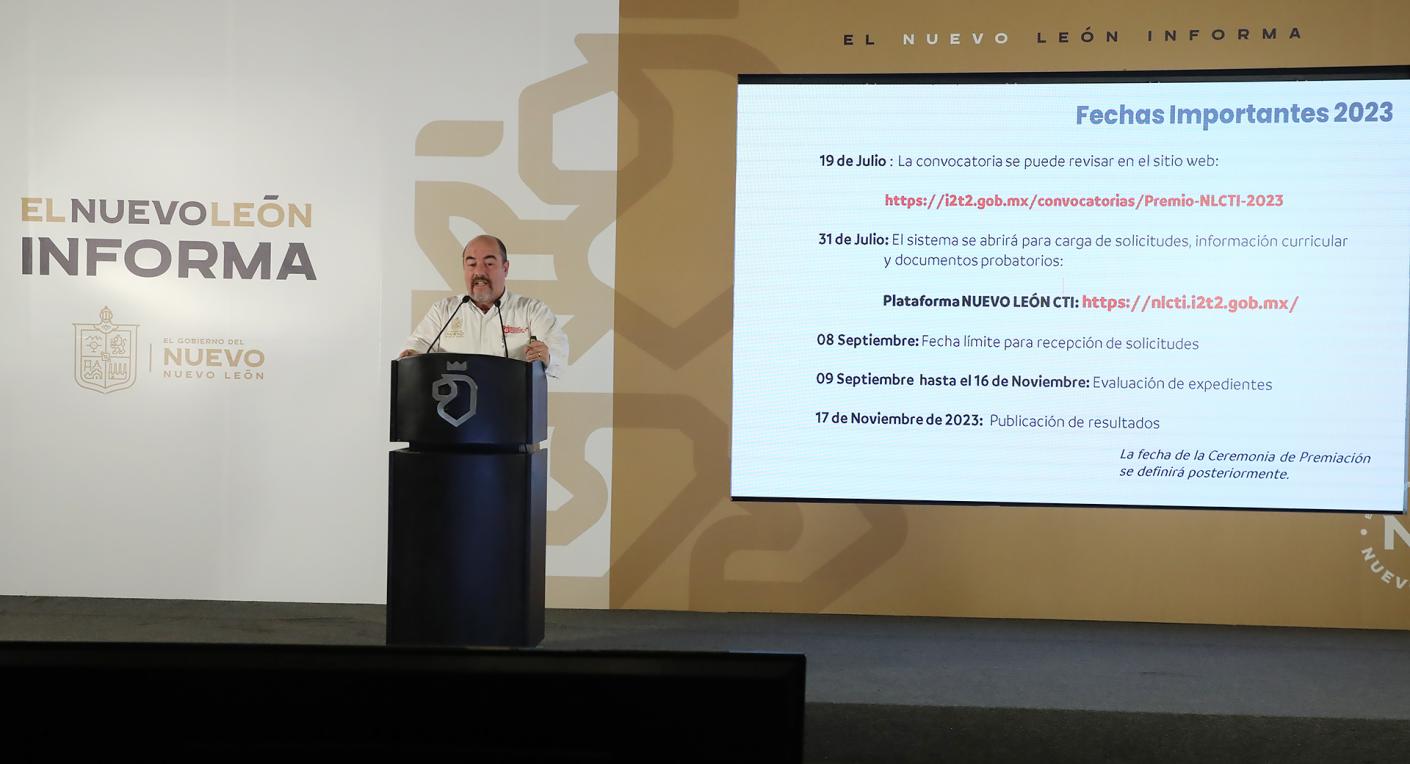La convocatoria del Premio Nuevo León de Ciencia, Tecnología e Innovación 2023 se puede consultar a partir de hoy, mientras que la plataforma para la carga de documentos se abre a partir del 31 de julio. La fecha de cierre de la convocatoria es hasta las 14:00 hrs del 8 de Septiembre de 2023.