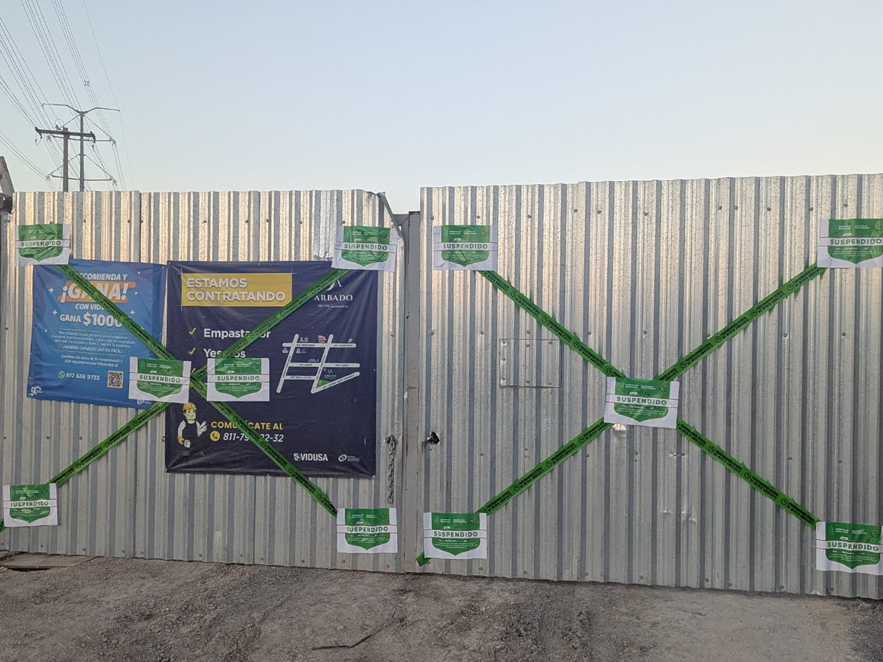 También se realizaron dos suspensiones de obras y actividades por incumplimiento ambiental, la suspensión de una obra en demolición, ubicada en Monterrey, a cargo de una persona física, debido a las emisiones generadas durante su desarrollo y por incumplimiento de las disposiciones de la legislación ambiental vigente y la otra suspensión total de actividades de Concretos Delese, S.A. de C.V., ubicada en Apodaca, por no cumplir con las medidas correctivas dictadas previamente por esta Dependencia, relacionadas con el manejo de residuos y control de emisiones.