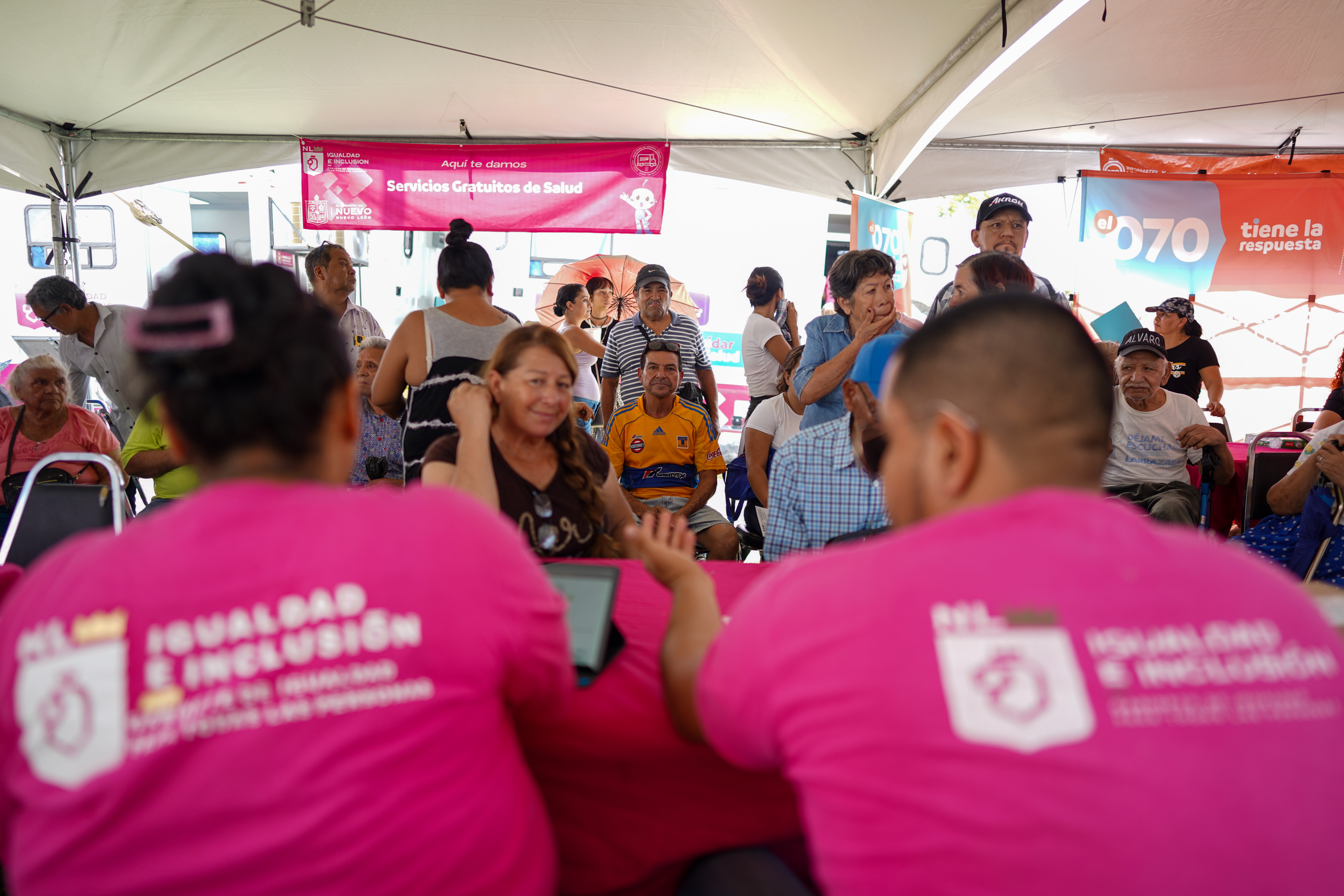 En el 2023, la Secretaría de Igualdad e Inclusión ha realizado 128 Estaciones de Servicio Público y de Atención Comunitaria, acercando más de 270 mil servicios a casi 50 mil asistentes; para este año la meta es realizar 200 Ediciones en los 51 municipios de Nuevo León.