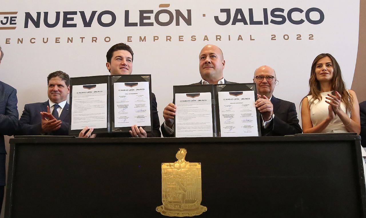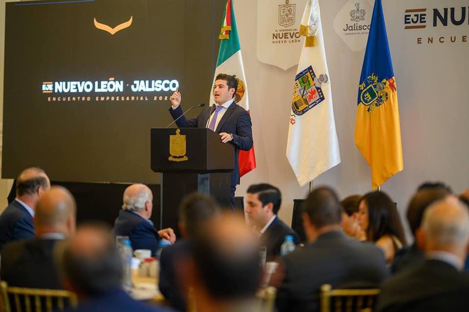En el Encuentro Empresarial 2022, Eje Nuevo León-Jalisco el Gobernador Samuel Alejandro García Sepúlveda señaló que ambos estados se constituyen en un símbolo de gente trabajadora, de cultura y de industria.