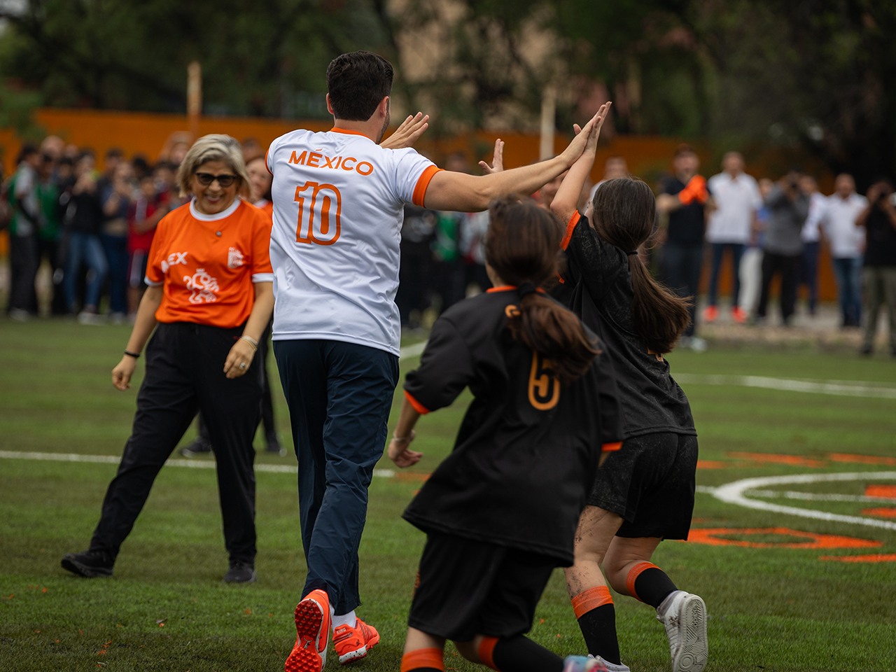 • “Vamos a construir 300 canchas para el Mundial, ya van 60, pero vamos a construir 300 con un monto de 200 millones de pesos, puras canchas de primer nivel”, puntualizó.