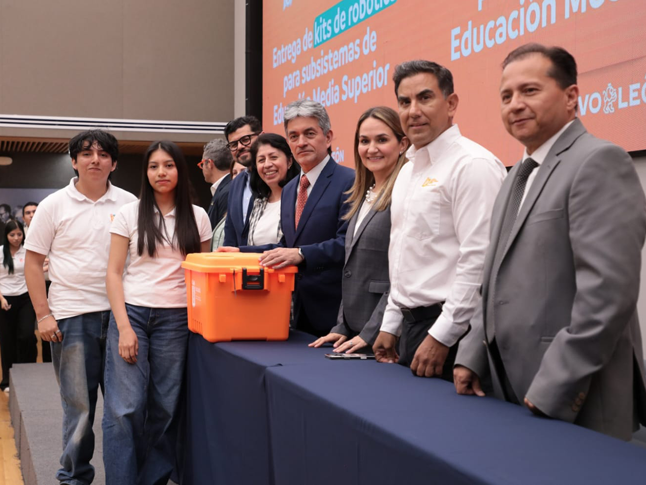 Monterrey, Nuevo León.- Con el objetivo de impulsar el desarrollo de habilidades STEM, la Secretaría de Educación de Nuevo León, en alianza con PrepaTEC Monterrey, realizó la entrega de kit de robótica a 210 estudiantes y 42 docentes de los subsistemas CONALEP, CECYTE, DGETI y Colegio Militarizado, como parte del programa “Formación Introducción a First Robotics”