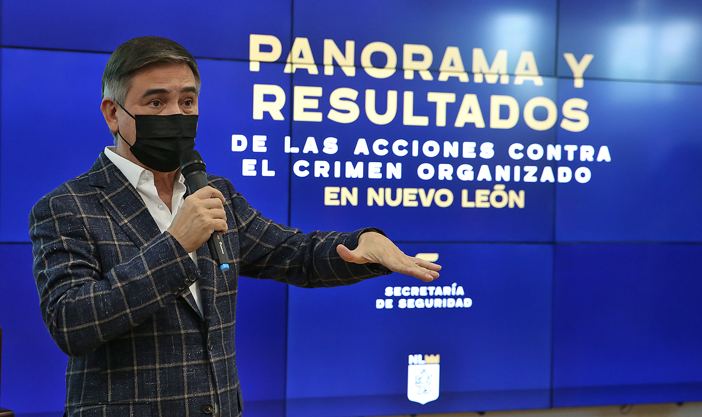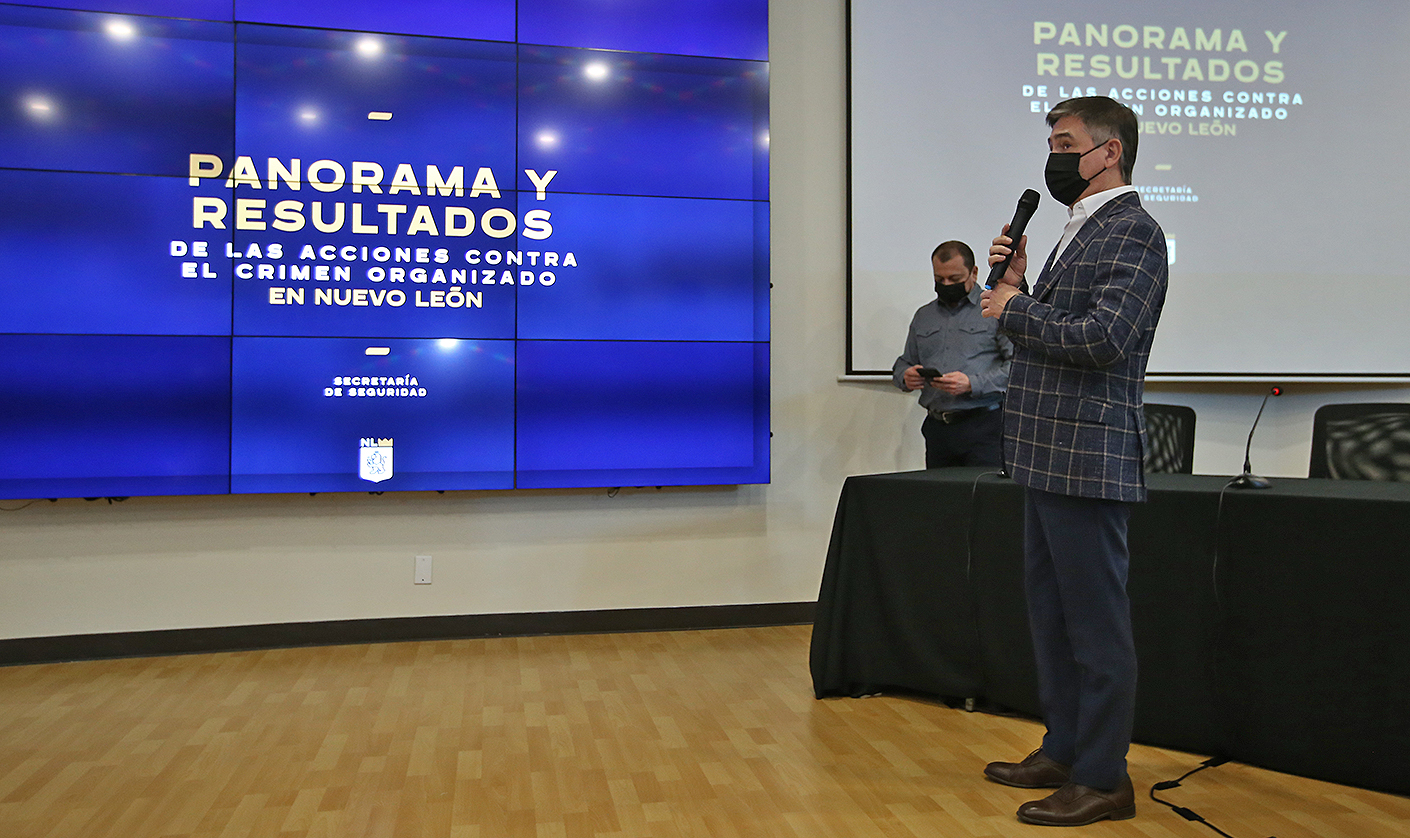 En la rueda de presa Fasci Zuazua presentó el Panorama y Resultados de las acciones contra el crimen organizado en Nuevo León, en donde destacó que en la entidad se ha detectado la operación de al menos cuatro cárteles delictivos.