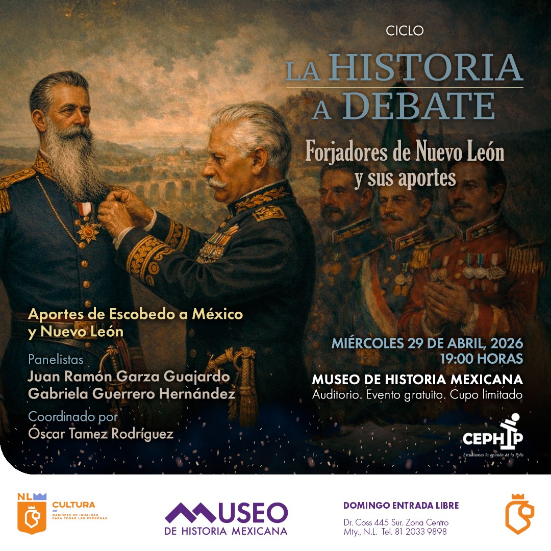 - En el marco del primer lustro del programa; “Historia a Debate: Aportes de Escobedo a México y Nuevo León” se llevará a cabo el miércoles 29 de abril a las 19:00 horas en el auditorio del Museo de Historia Mexicana.