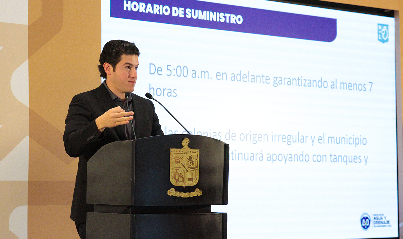 A partir de este jueves el suministro de agua a la zona metropolitana de Monterrey iniciará a las 5 de la mañana, garantizando al menos siete horas de abasto, anunció el Gobernador Samuel Alejandro García Sepúlveda.