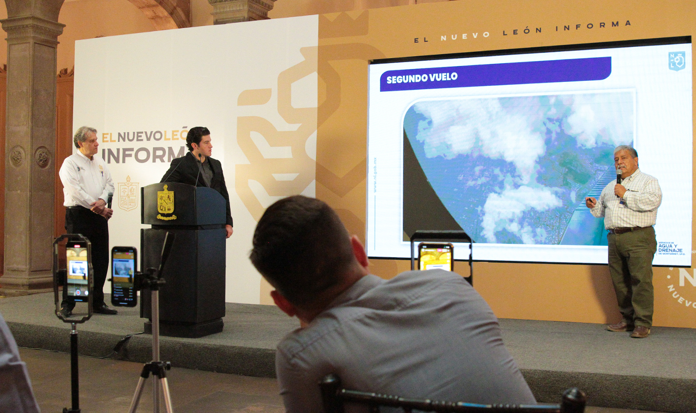 Junto al Director de Agua y Drenaje de Monterrey, Juan Ignacio Barragán, comentó que gracias a la estimulación de las nubes, las lluvias de este martes la Presa de la Boca está captando alrededor de 5 mil litros de agua por segundo.