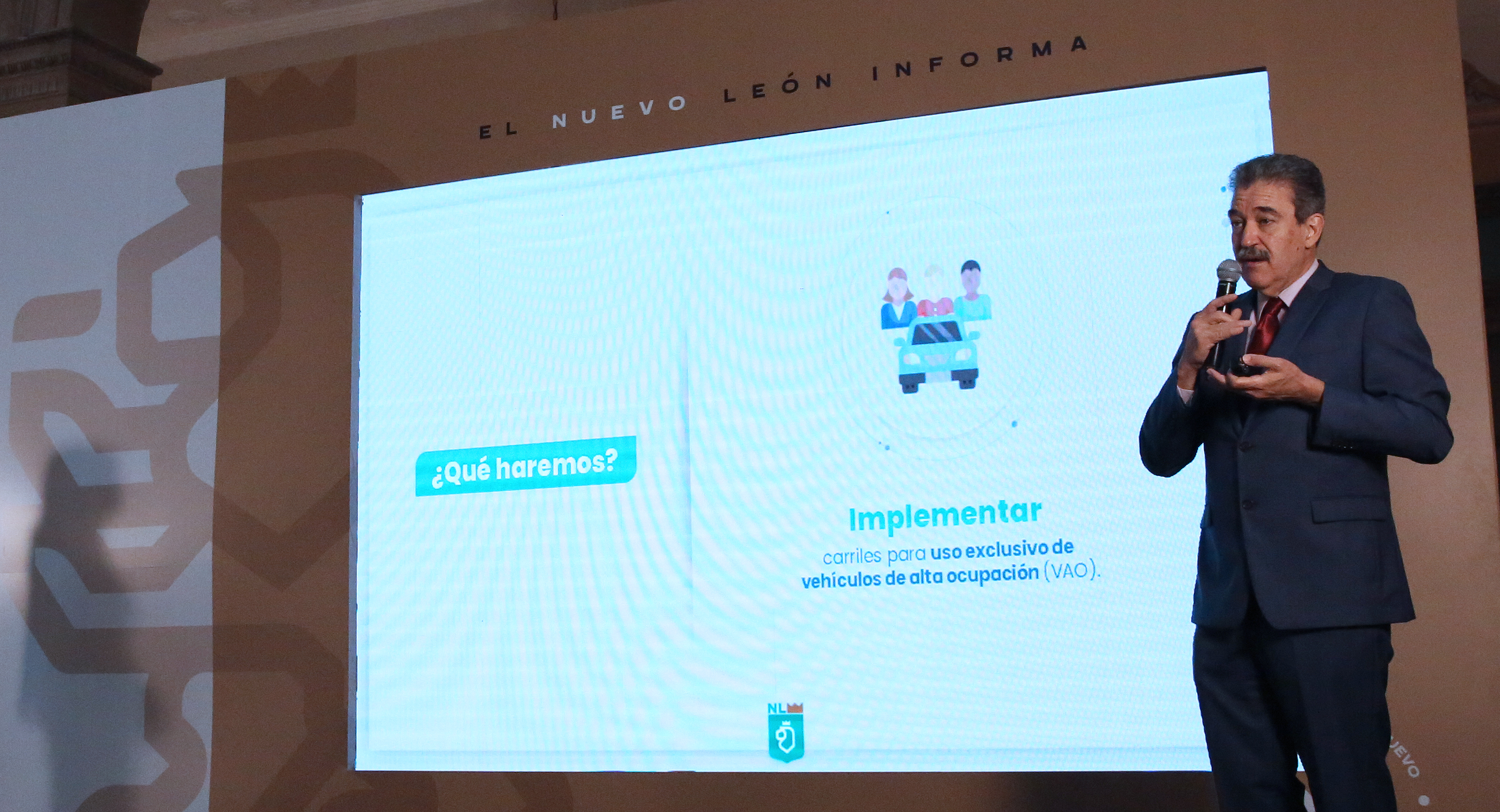 En la rueda de prensa El Nuevo León Informa y tras la presentación del proyecto SINTRAM 2021 que en conjunto implementará el Estado y nueve municipios del área metropolitana, el Mandatario estatal señaló que en este proyecto de movilidad se invertirán mil 100 millones de pesos y entre otros beneficios, incluye la instalación de cámaras de seguridad y de monitoreo ambiental.