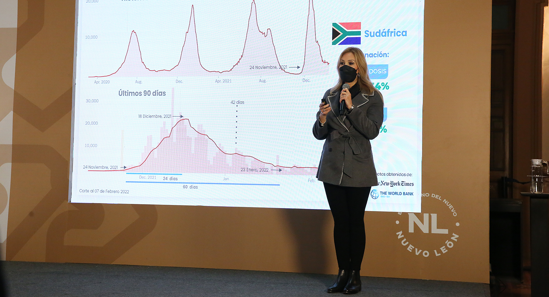 "En Nuevo León iniciamos el 28 de diciembre con este ascenso rápido y también tuvimos nuestro pico semejante al resto de los países el día 23, y a partir de ahí la tendencia ha sido hacia la baja, obviamente algunos días con descensos importantes, como lo vemos el día de hoy, posiblemente tengamos algún repunte, no tan alto como el que hemos venido identificando, pero la tendencia franca es a la disminución".