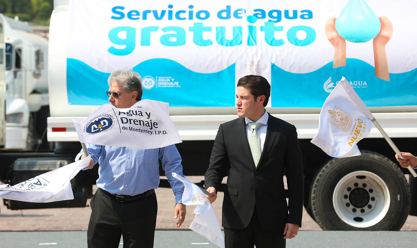 Posterior al Nuevo León Informa el Gobernador dio el banderazo de salida a 30 pipas, de las 120 con las que se contarán, que recargarán los 159 tanques cisterna que están distribuidos a lo largo del área metropolitana, con el fin de agilizar el abasto en la ciudad.