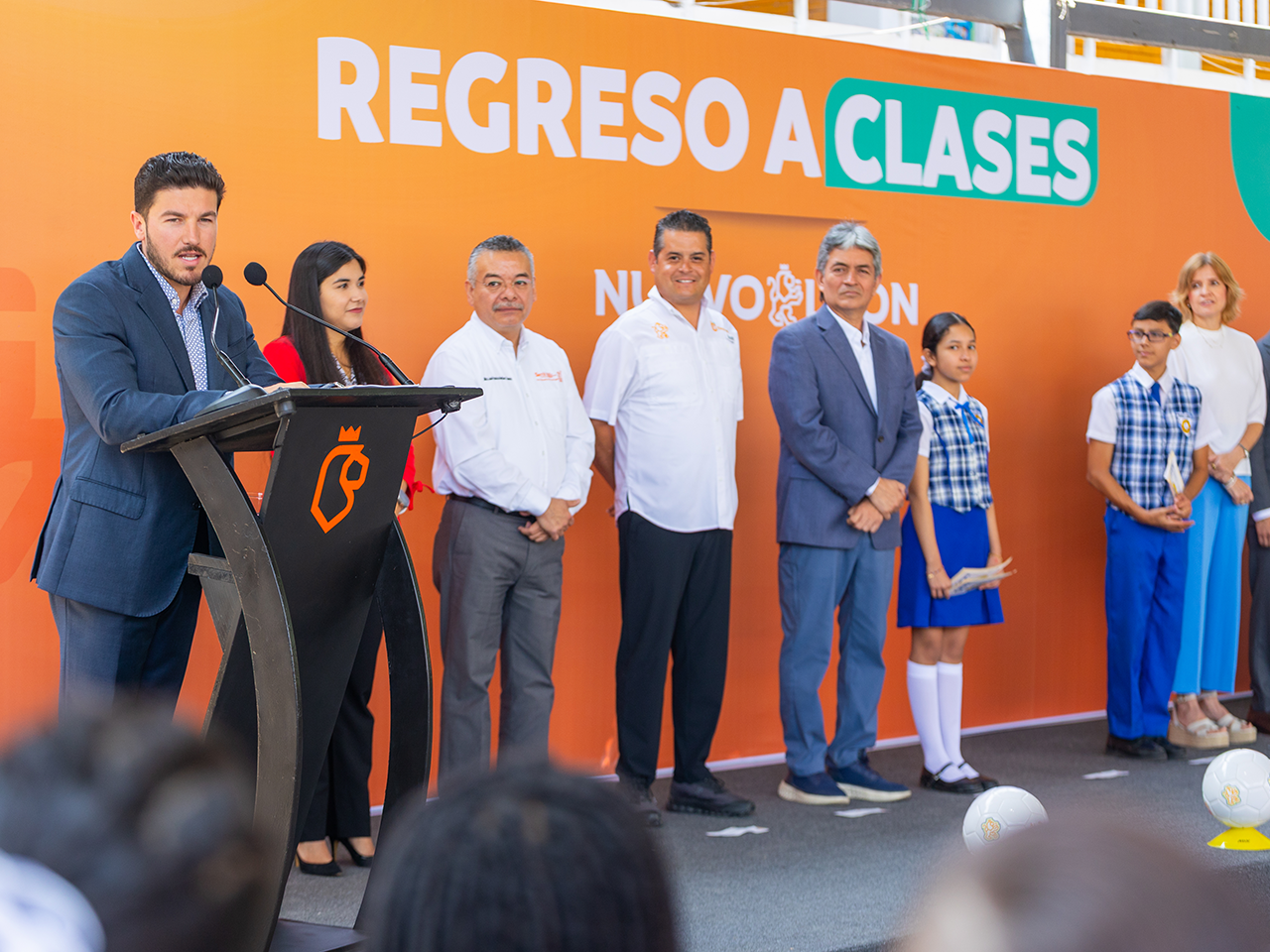 Monterrey, Nuevo León.- Tras encabezar el regreso a clases en la Primaria Club de Leones 19 “Rómulo Garza”, el Gobernador de Nuevo León, Samuel Alejandro García Sepúlveda anunció la construcción de 30 nuevas escuelas para el Estado.