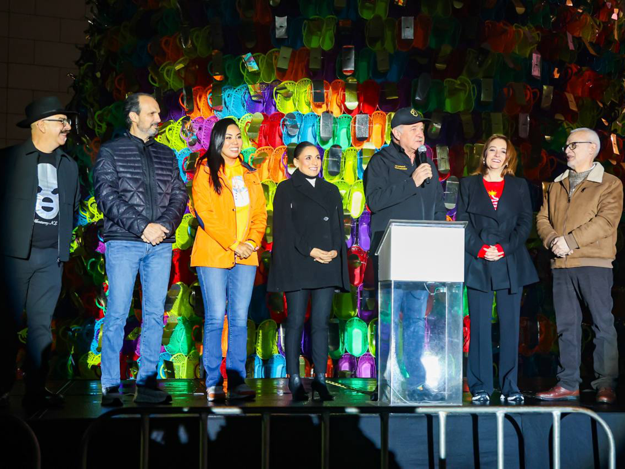 Previo al arranque, el Secretario General de Gobierno fue el encargado de encender el tradicional Pino Navideño 2024 de los 3 Museos el cual fue realizado por el artista Sergio Rodríguez.
