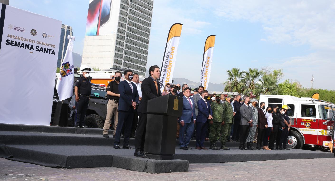 Con la participación de más de 5 mil elementos de corporaciones de seguridad y cuerpos de auxilio estatales, federales y municipales, el Gobernador Samuel Alejandro García Sepúlveda arrancó el Operativo Semana Santa Segura 2022 para salvaguardar a los neoloneses y los turistas que visiten la entidad durante la temporada vacacional.