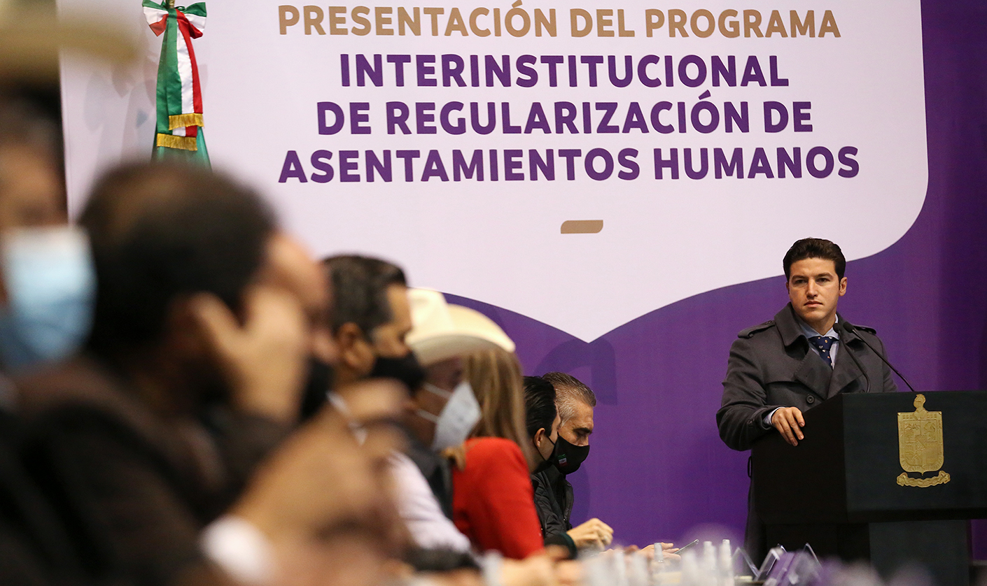 En un esfuerzo para que Nuevo León sea una entidad con un desarrollo urbano ordenado, sustentable y resiliente, el Gobernador Samuel Alejandro García Sepúlveda arrancó el Programa Interinstitucional de Regularización de Asentamientos Humanos.
