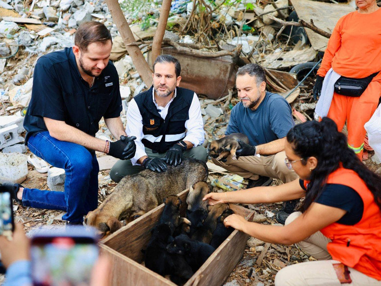 Durante las labores de limpieza, voluntarios encontraron en el cauce una perrita con 10 cachorritos, los cuales fueron resguardados por Bienestar Animal y serán puestos en adopción a través del 070.