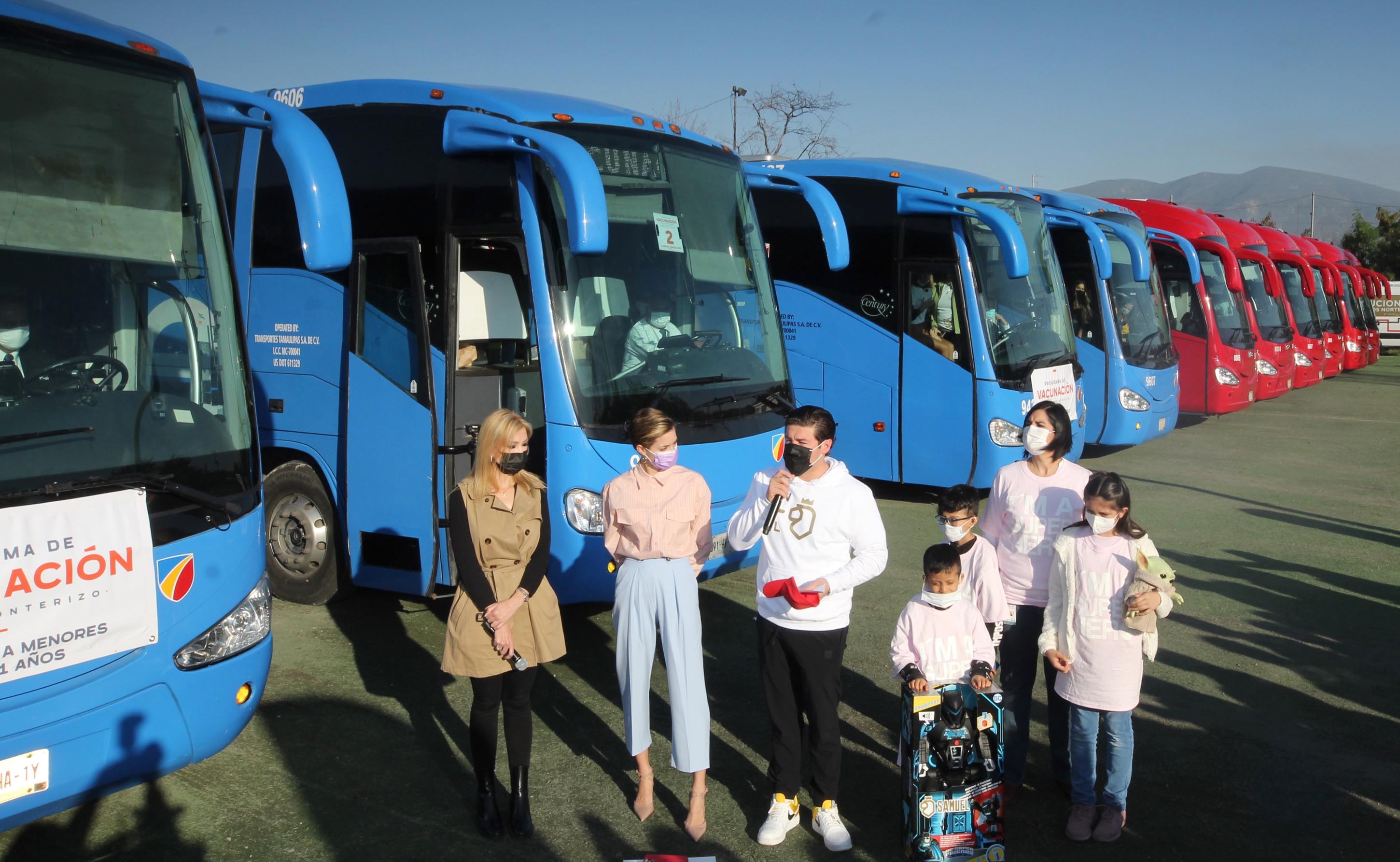 Con el banderazo de salida de 18 autobuses hacia la frontera de Laredo, Texas, Nuevo León se convirtió hoy en el primer estado del país en iniciar la vacunación contra Covid-19 de menores de 5 a 11 años de edad.