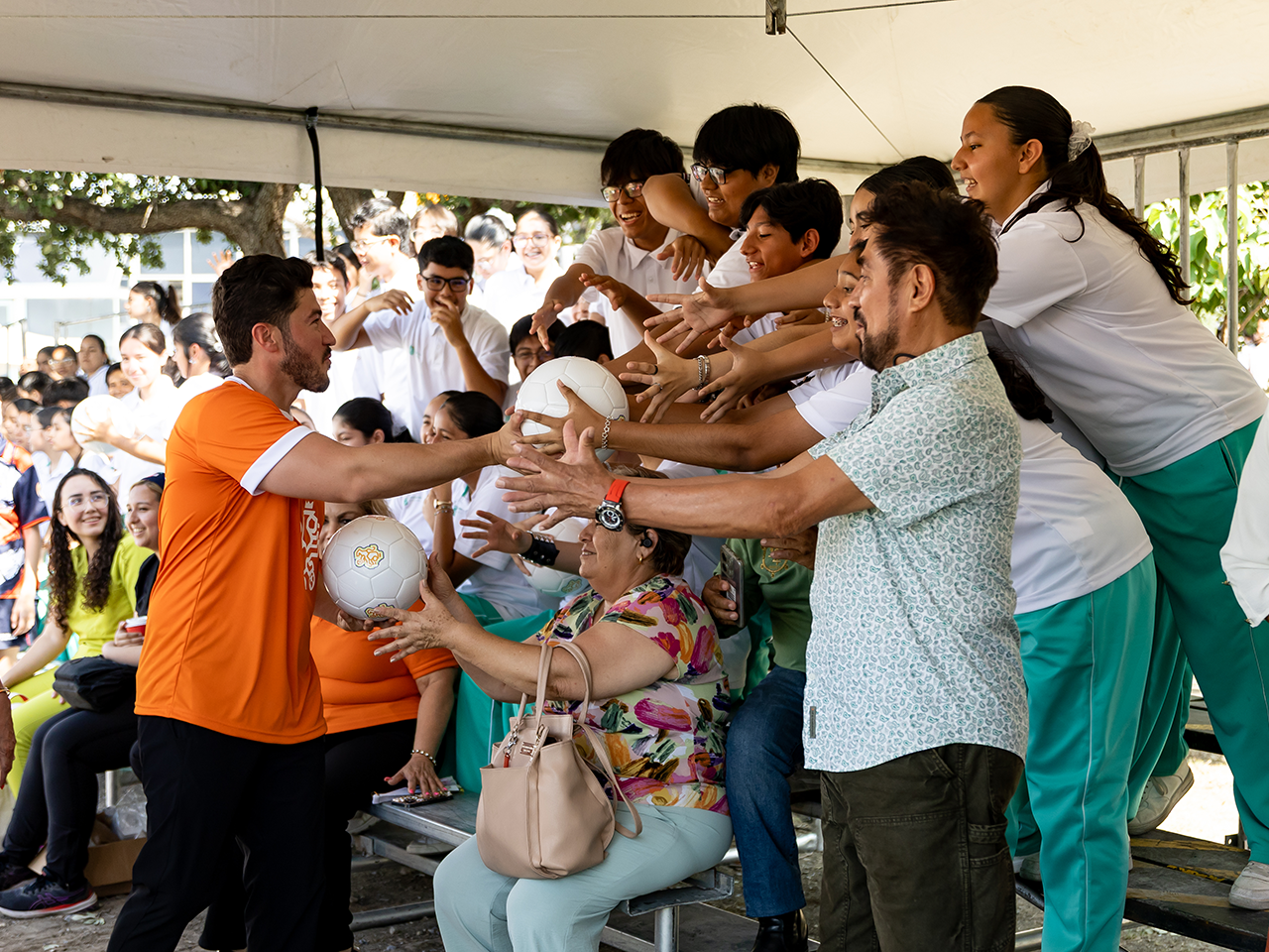 “Estamos a 360 días del Mundial y el mensaje a todos es pónganse nuevos, saquen su mejor versión, saquen las mejores calificaciones, cuiden muy bien sus cosas, su familia, cuiden el agua, no contaminen, no tiren basura”, apuntó.