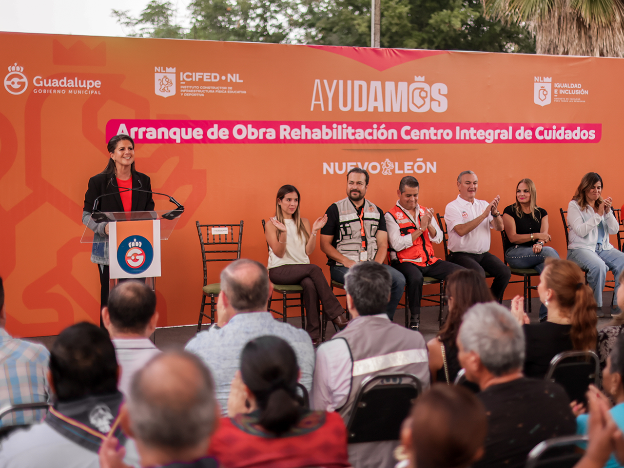 Al evento acudieron Héctor García, Alcalde del municipio; Blanca Treviño, Presidenta del DIF de Guadalupe; Luis Fernando Domínguez Martín del Campo, Director del Instituto Constructor de Infraestructura Física, Educativa y Deportiva; Dulce Alejandre Mora, Subsecretaria de Protección Social y Oportunidades; Anelís Elizondo Martínez, Secretaria de Bienestar del Municipio de Guadalupe; Silvia María Múzquiz Soto, Secretaria de Salud del Municipio de Guadalupe, y Guillermo Hernández Ramírez, Secretario de Infraestructura y Desarrollo Urbano del Municipio de Guadalupe.