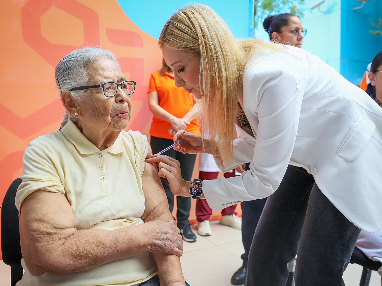 La funcionaria estatal señaló que la meta para esta temporada es aplicar un millón 600 mil dosis de vacuna de influenza y 498 mil 857 de COVID-19.