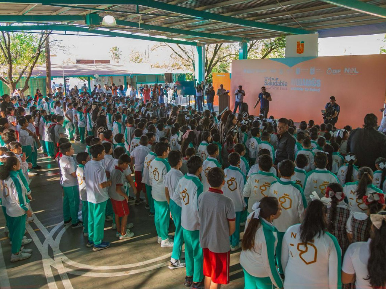 La ceremonia se llevó a cabo en la escuela Primaria: Sofía Ramírez Guerra, ubicada en la colonia Valle Verde en Monterrey, en la que coordinados por la Secretaría de Educación, personal de la Secretaría de Salud, el IMSS y el DIF, realizaron evaluación de peso y talla, salud visual e higiene bucal; además de activación física y pláticas para promover una alimentación saludable.