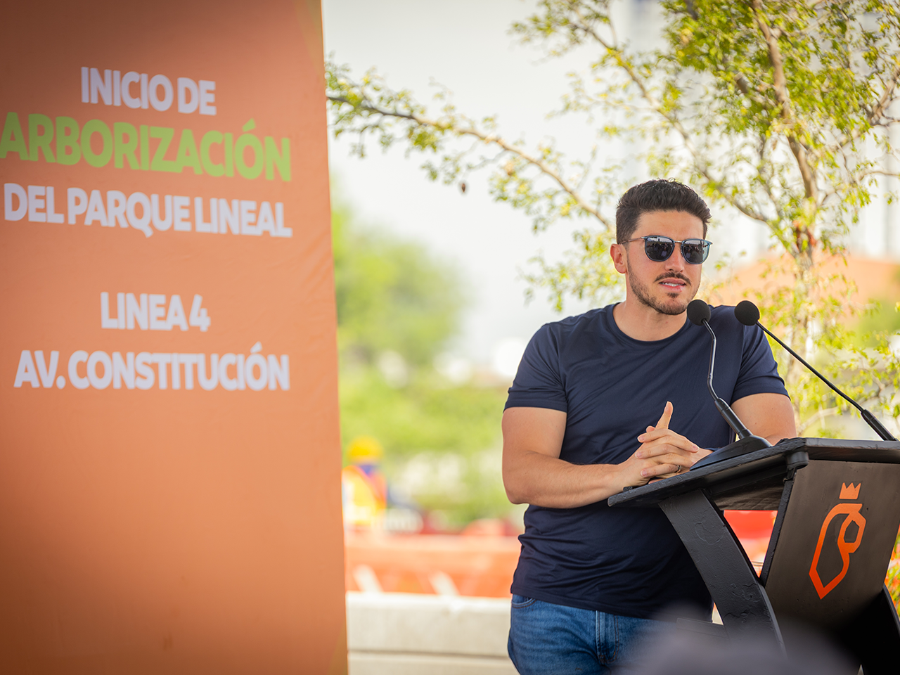 "Hoy empezamos a arbolar los primeros 60 de miles de árboles, todo Constitución y van a notar lo mismo del lado de Morones. En Morones también había dos carriles muertos, y ya lo estamos haciendo parque lineal, se van a arbolar idénticos son gemelos", indicó García Sepúlveda.