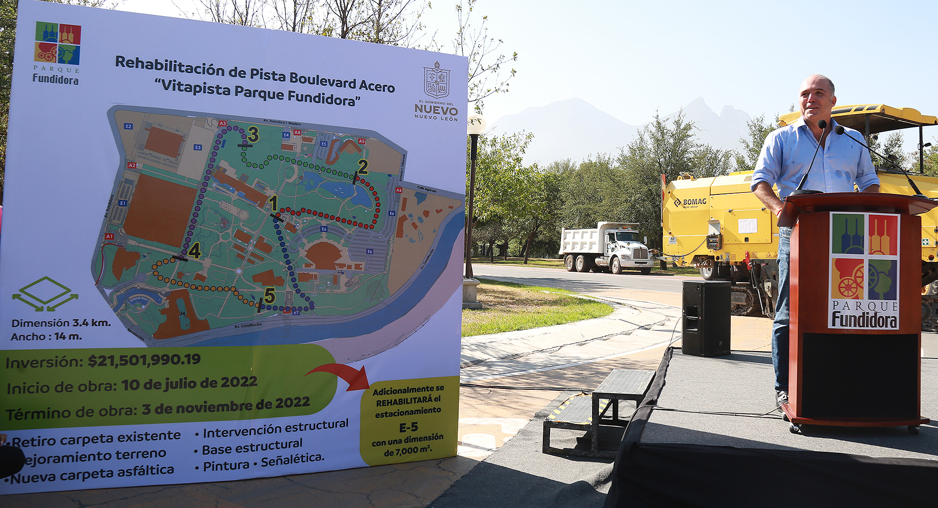 Bernardo Bichara Assad, presidente del Consejo de Parque Fundidora dijo que el objetivo de la obra es brindar mejores instalaciones para deportistas y visitantes al parque, este día arrancaron los trabajos de rehabilitación del Boulevard Acero “Vitapista Parque Fundidora”.