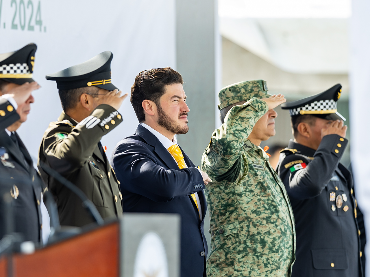 Durante la ceremonia, el Gobernador fue testigo del cambio de mandos y los honores del Comisario en Jefe ante la protesta al frente de la zona que alberga a Nuevo León.
