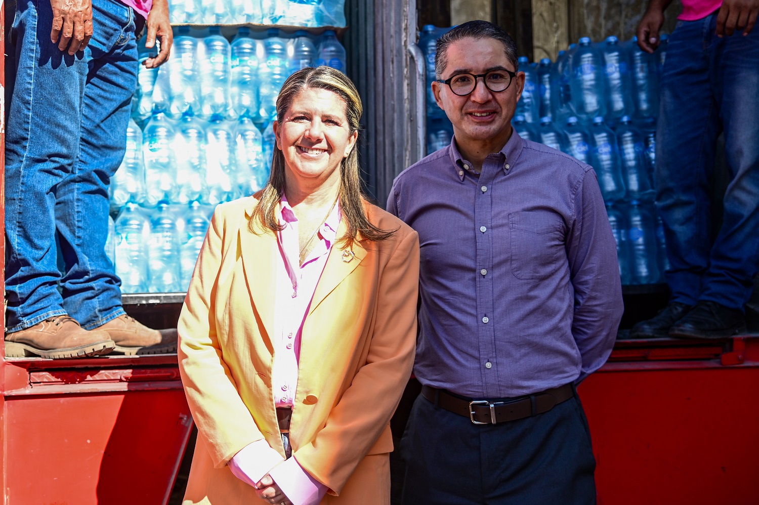 Al recibir un donativo de 5 mil litros agua purificada por parte de ARCA Continental México, la funcionaria estatal detalló que a la fecha se han instalado 200 puntos de hidratación en más de 28 municipios, ubicados en espacios públicos, guarderías y en la red de Centros Comunitarios.
