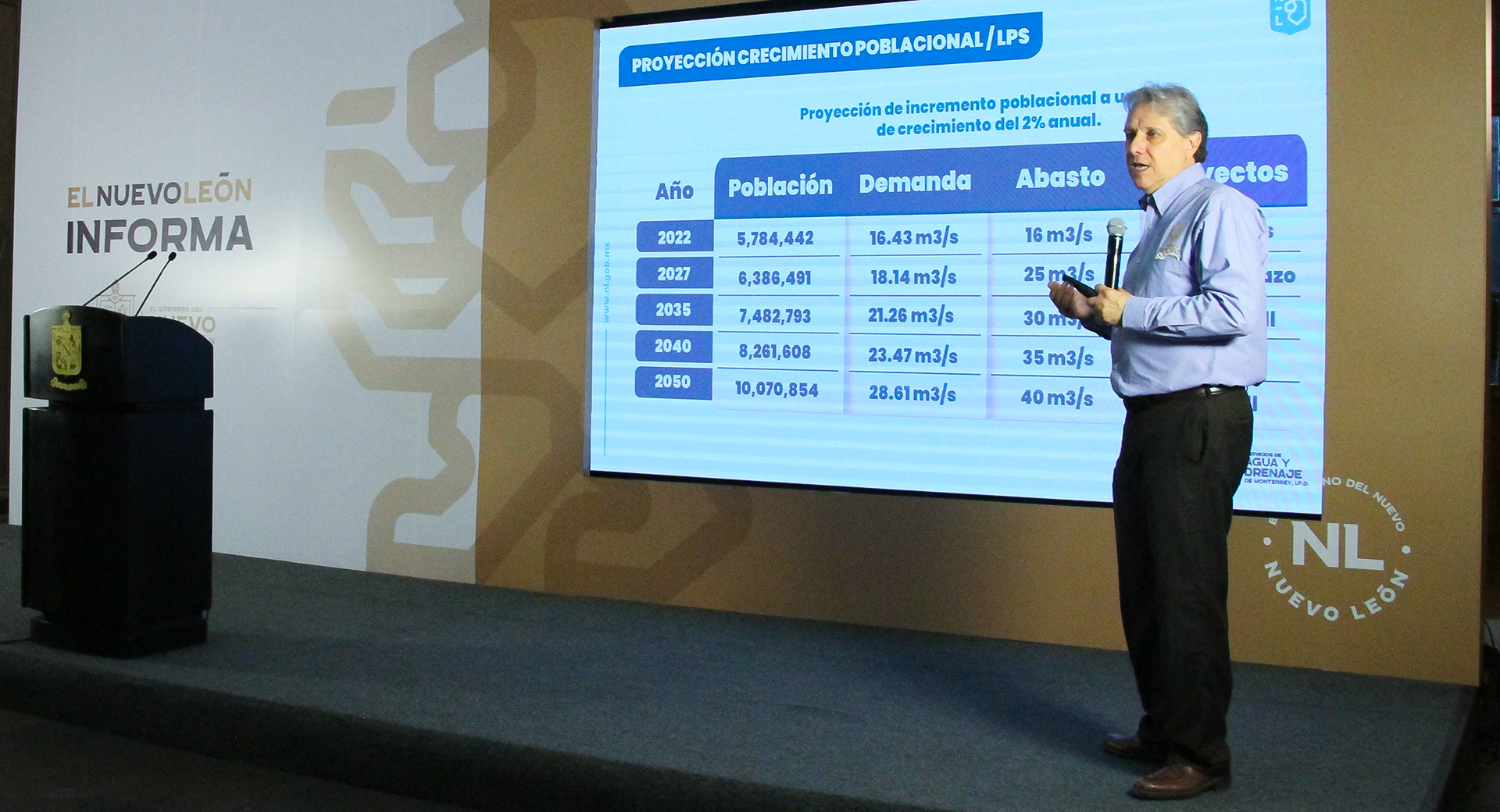 Además, Juan Ignacio Barragán dio a conocer una proyección estadística estimada de la demanda, en relación a la tasa de crecimiento del Estado del 2022 al 2050 que, con los proyectos emergentes, los de mediano y largo plazo integran el Plan Maestro para Garantizar el Agua en Nuevo León que presentó el Gobernador Samuel Alejandro García Sepúlveda.