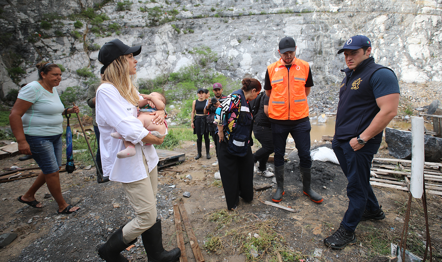 Acompañado de su esposa Mariana Rodríguez Cantú y de funcionarios que se encuentran atendiendo zonas donde se requiere ayuda para la población, el mandatario dialogó con los ciudadanos, quienes le presentaron una serie de necesidades, luego de que las corrientes torrenciales causaran daños en su patrimonio.