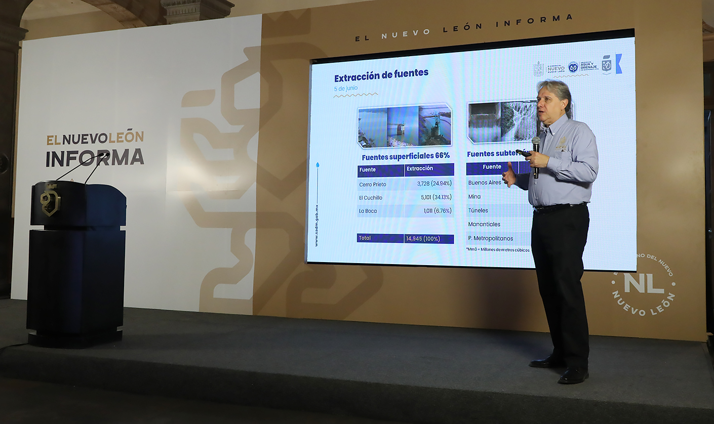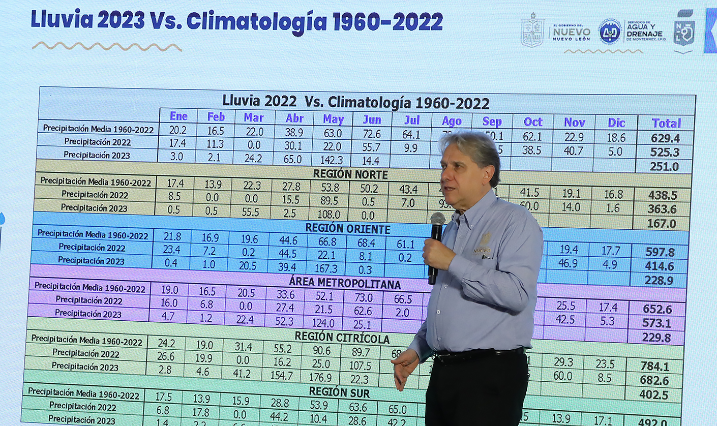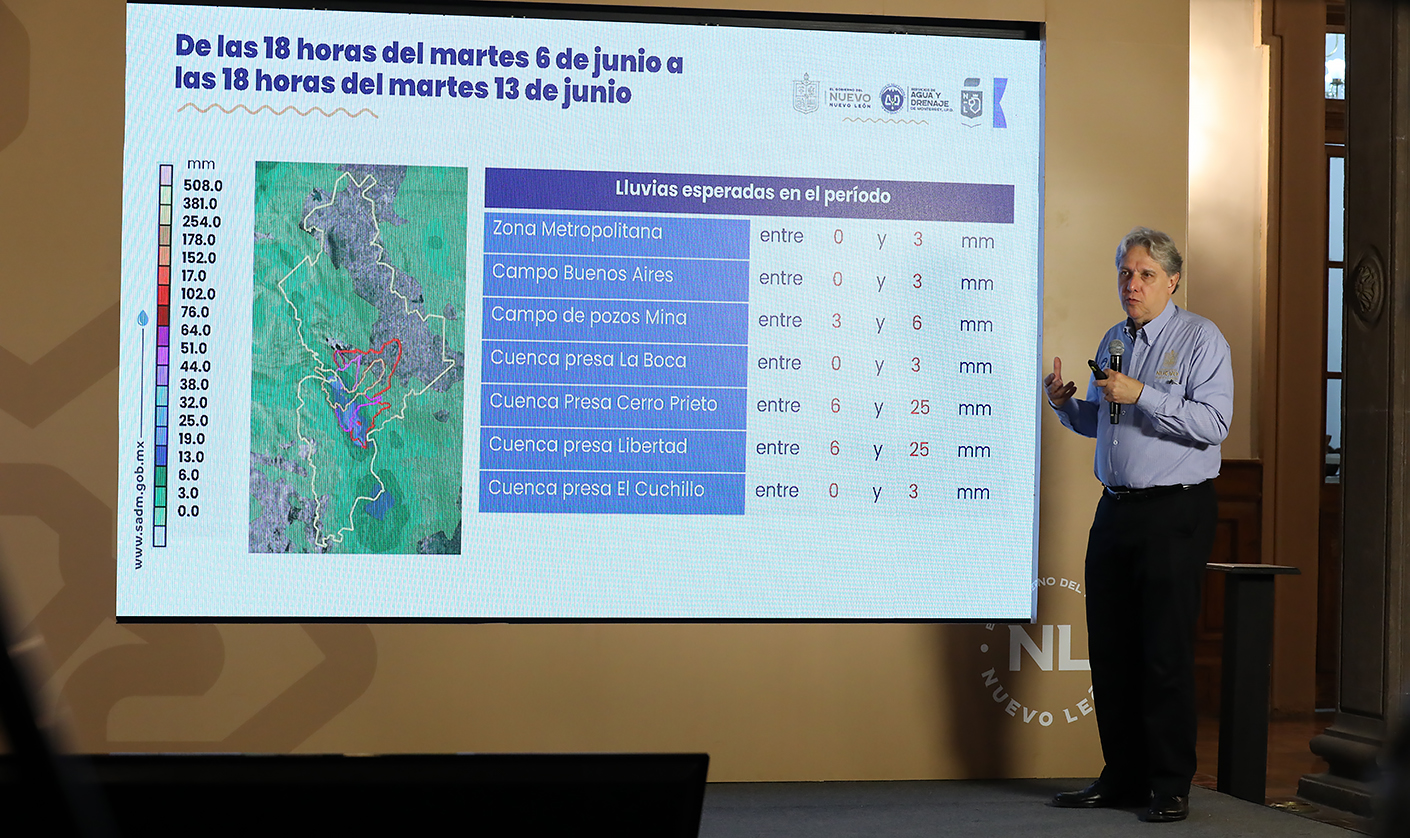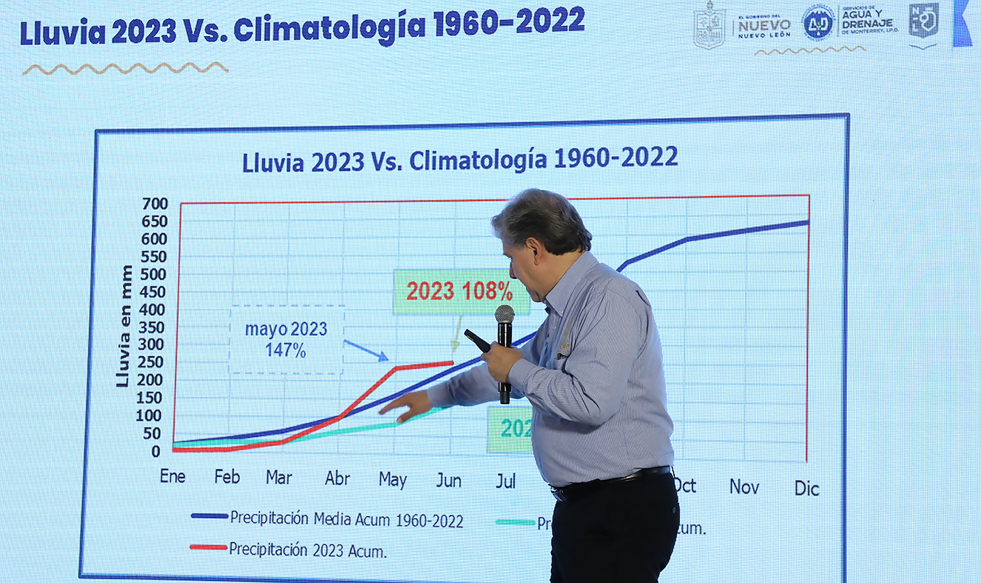 Al hacer un exhorto a la ciudadanía a no confiarse y hacer un uso eficiente del agua, el funcionario estatal explicó que los niveles de las presas en comparación con 2022 son superiores, ya que este 2023 las lluvias han sido muy benéficas, especialmente durante los meses de abril y mayo. Al día de hoy El Cuchillo registra 51.16%, Cerro Prieto 16.92% y La Boca 53.94%.