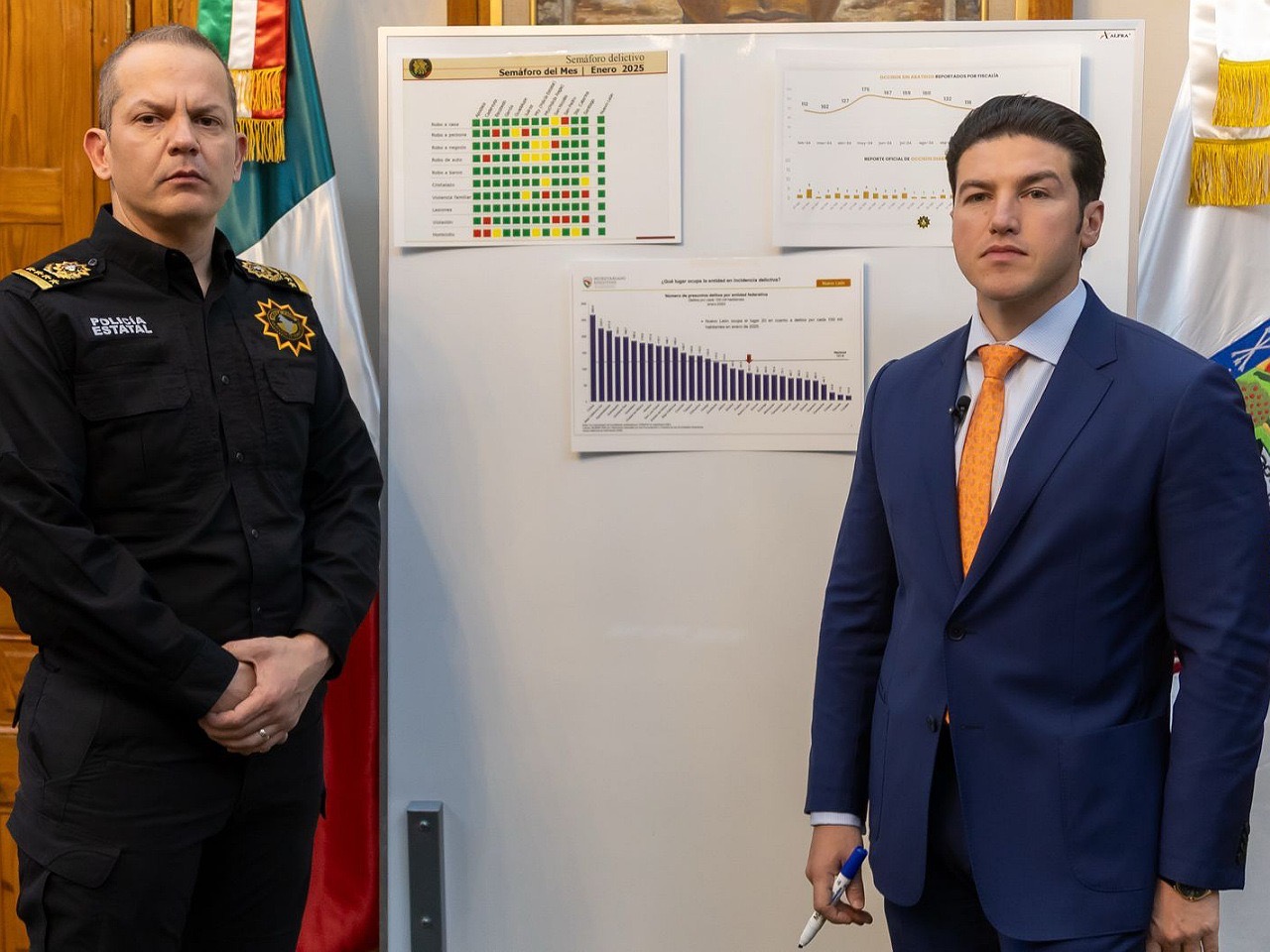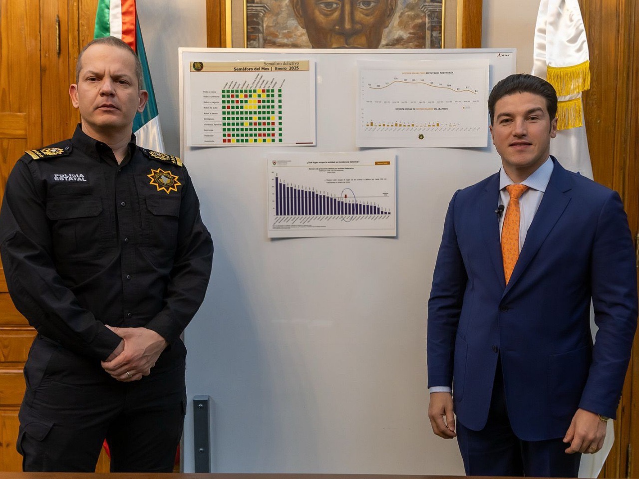 “Este mes de enero es un mes histórico para Nuevo León, estoy con el Secretario felicitándolo y diciéndole que ya este es nuestro piso, y ahora con Fiscal se tiene que poner aún mejor…. Este semáforo mide los delitos más comunes en los municipios más grandes de la zona metropolitana. Es la primera vez en mi administración que está todo en verde, es decir, aunque haya algunos rojos, en promedio, robo a casa, robo a personas, robo a negocios, el estado, grosso modo, está en buenos números, en verde”, aseguró el mandatario estatal.
