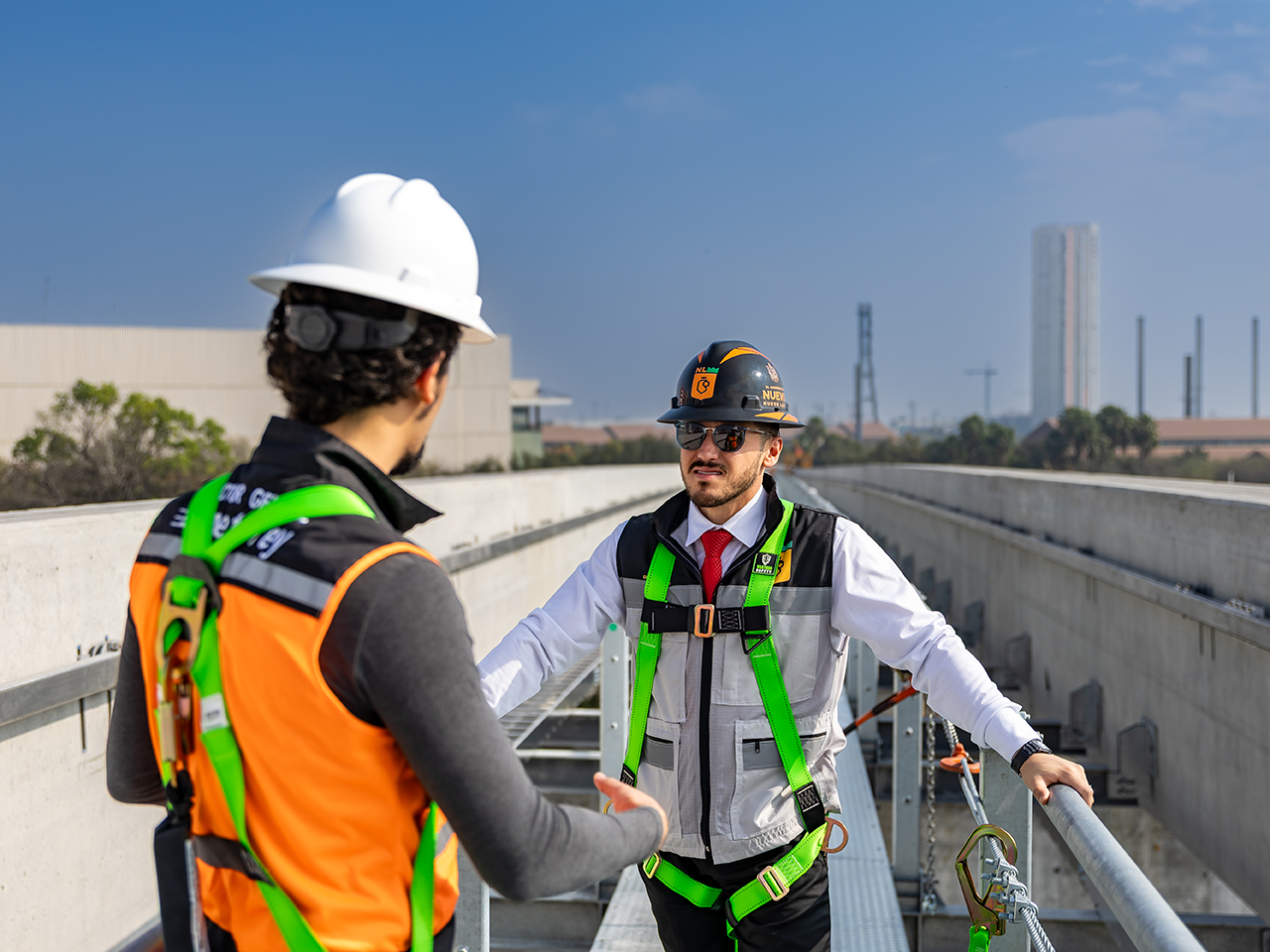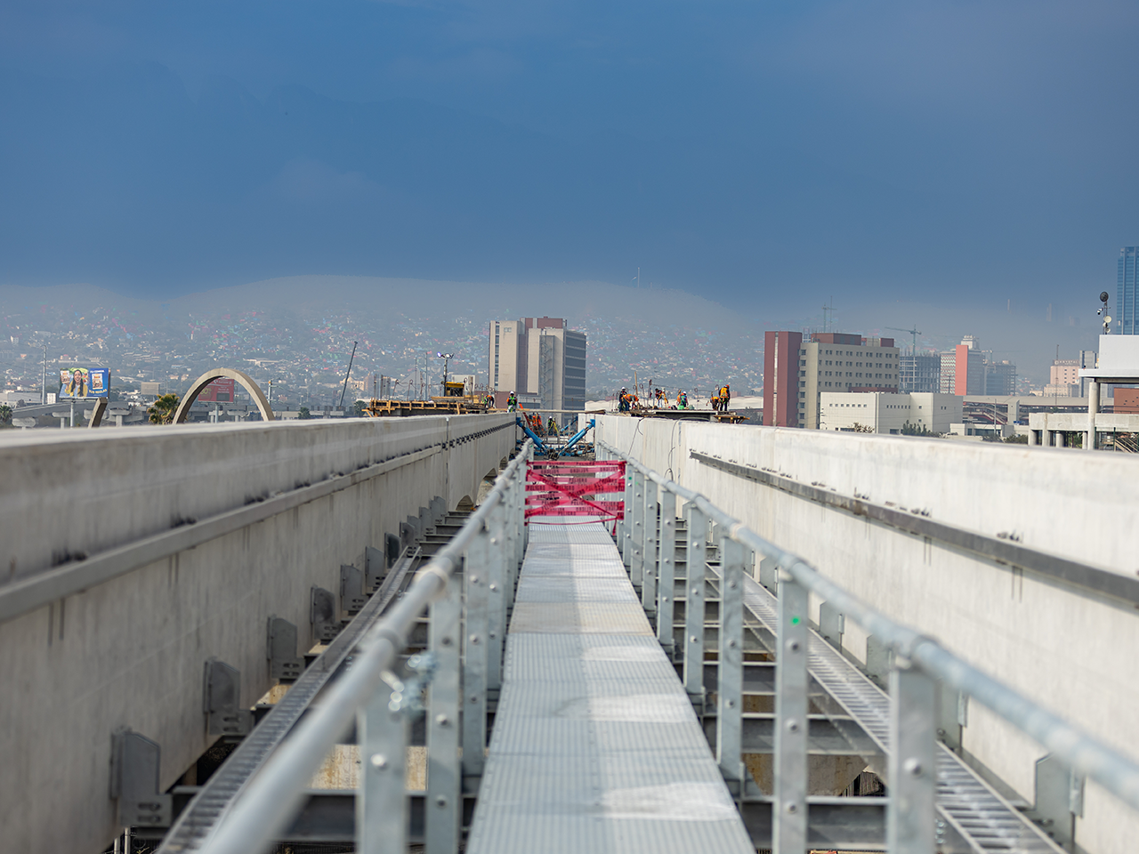 Monterrey, Nuevo León.-Al realizar un recorrido por las obras de la Línea 6 del Metro, en el tramo del Parque Fundidora, el Gobernador de Nuevo León, Samuel Alejandro García Sepúlveda mostró una pasarela instalada sobre la estación, la cual aseguró brindará seguridad a la ciudadanía.