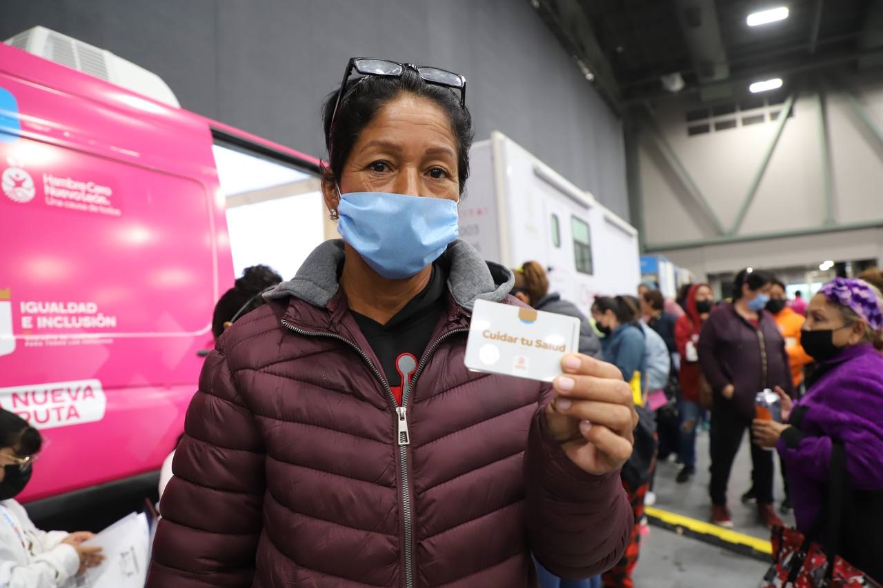 María Guadalupe Charles, habitante del municipio de Pesquería, recibió la tarjeta número 500 mil, con lo que ya cuenta con atención médica para ella y su hija de 13 años.