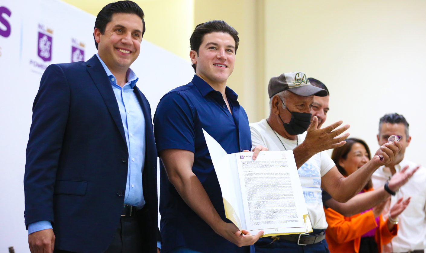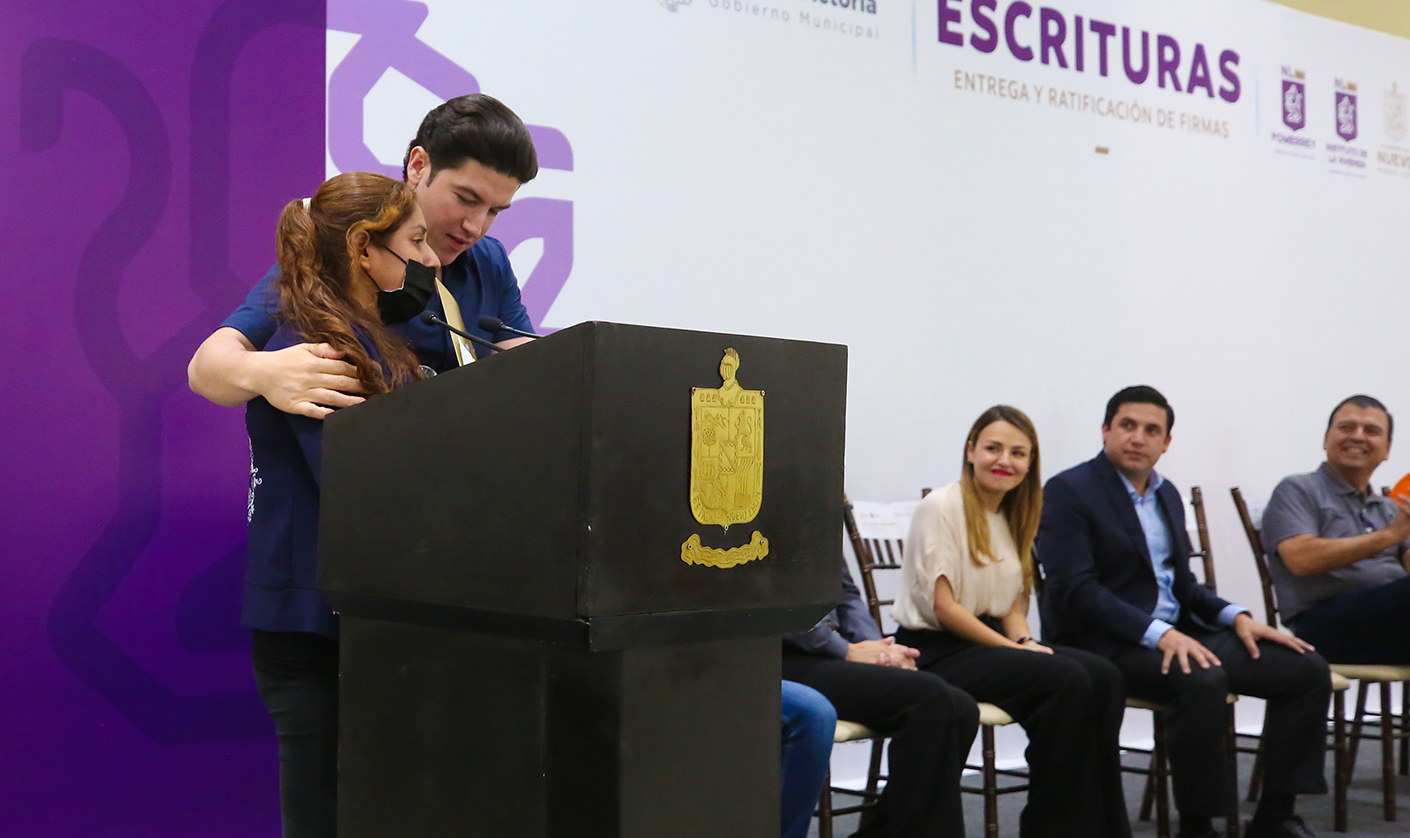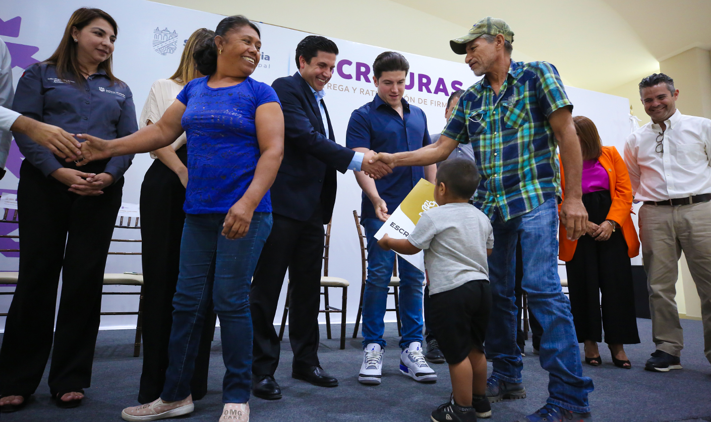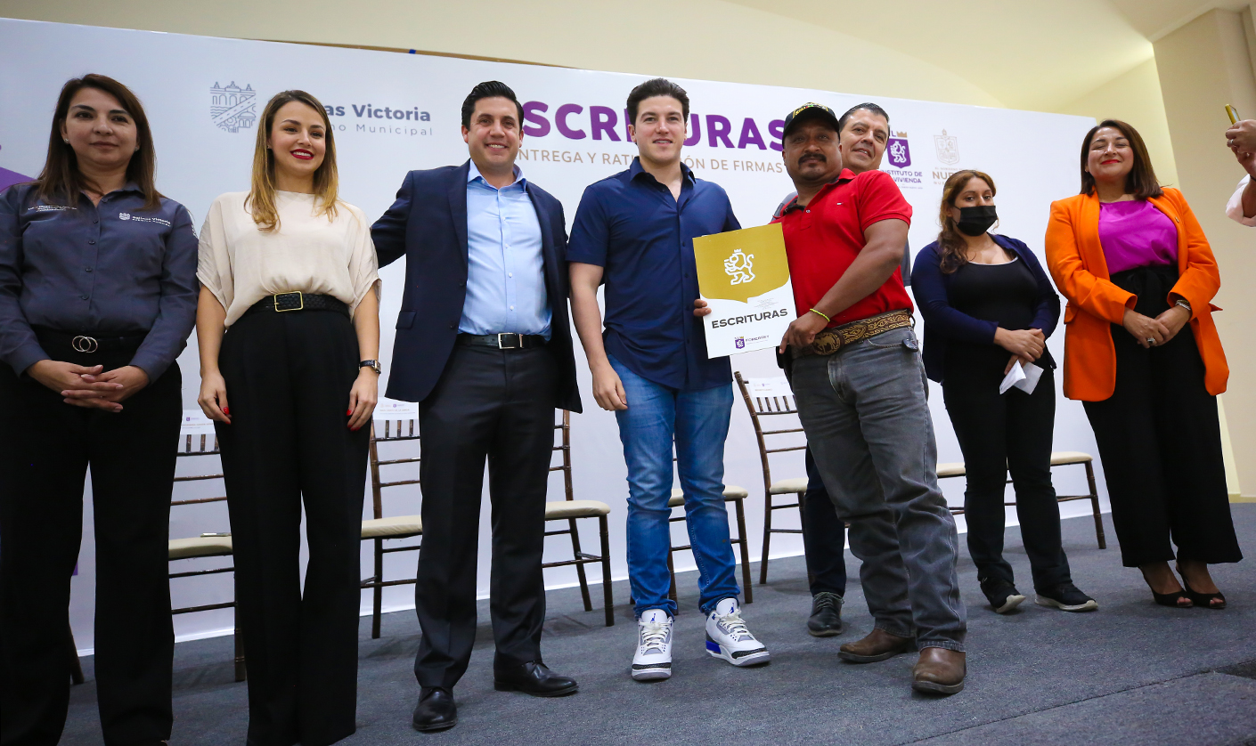 Tras encabezar la entrega de escrituras y ratificación de firmas de títulos de propiedad en el municipio de Salinas Victoria, el Gobernador Samuel Alejandro García Sepúlveda expresó que su Administración apoyará a las familias de escasos recursos para que además de su escritura, cuenten con una vivienda digna.